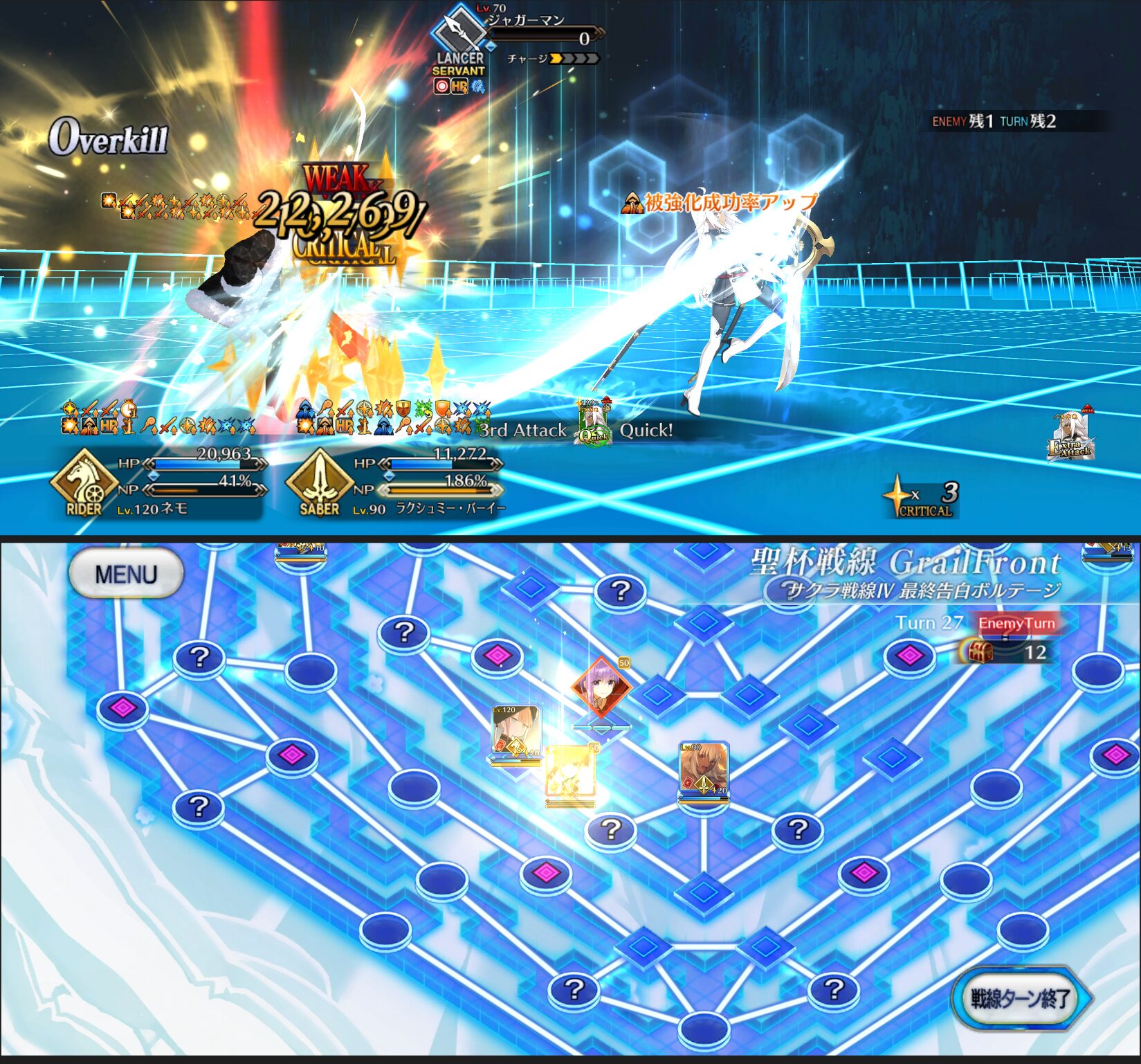 返すターン、多分ここか次でエミヤが脱落。中陣に向かい始めるリップを3騎で受ける。3騎ならダメージはさほどでもない