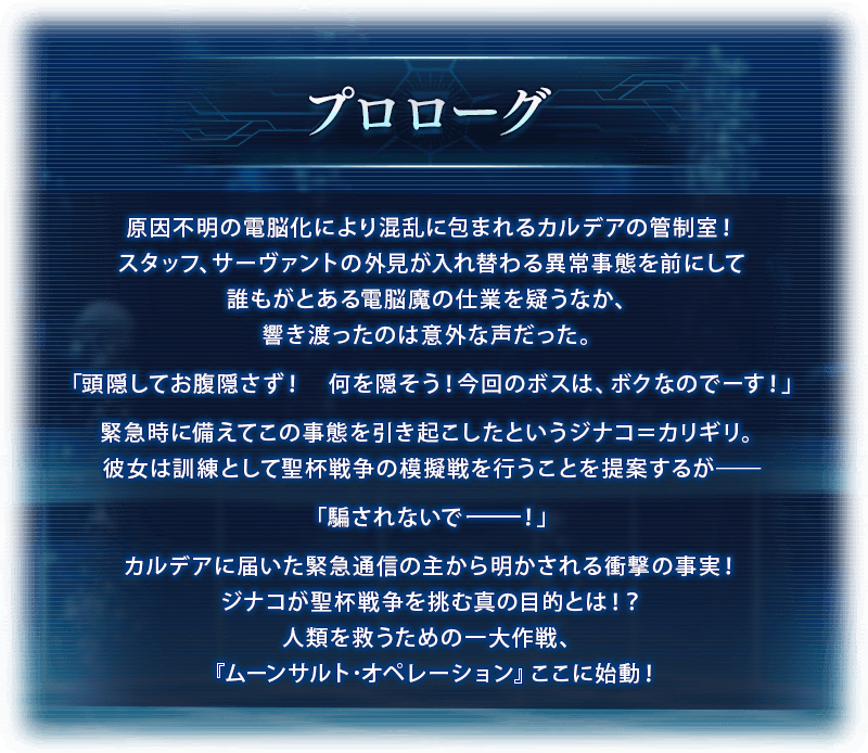 ジナコがマスターの自分と鯖の自分で分裂してたしムーンキャンサーの自分を鯖として出してくるとか?聖杯戦線ほどコマンドコード付け替えするの楽しいの無いと思う