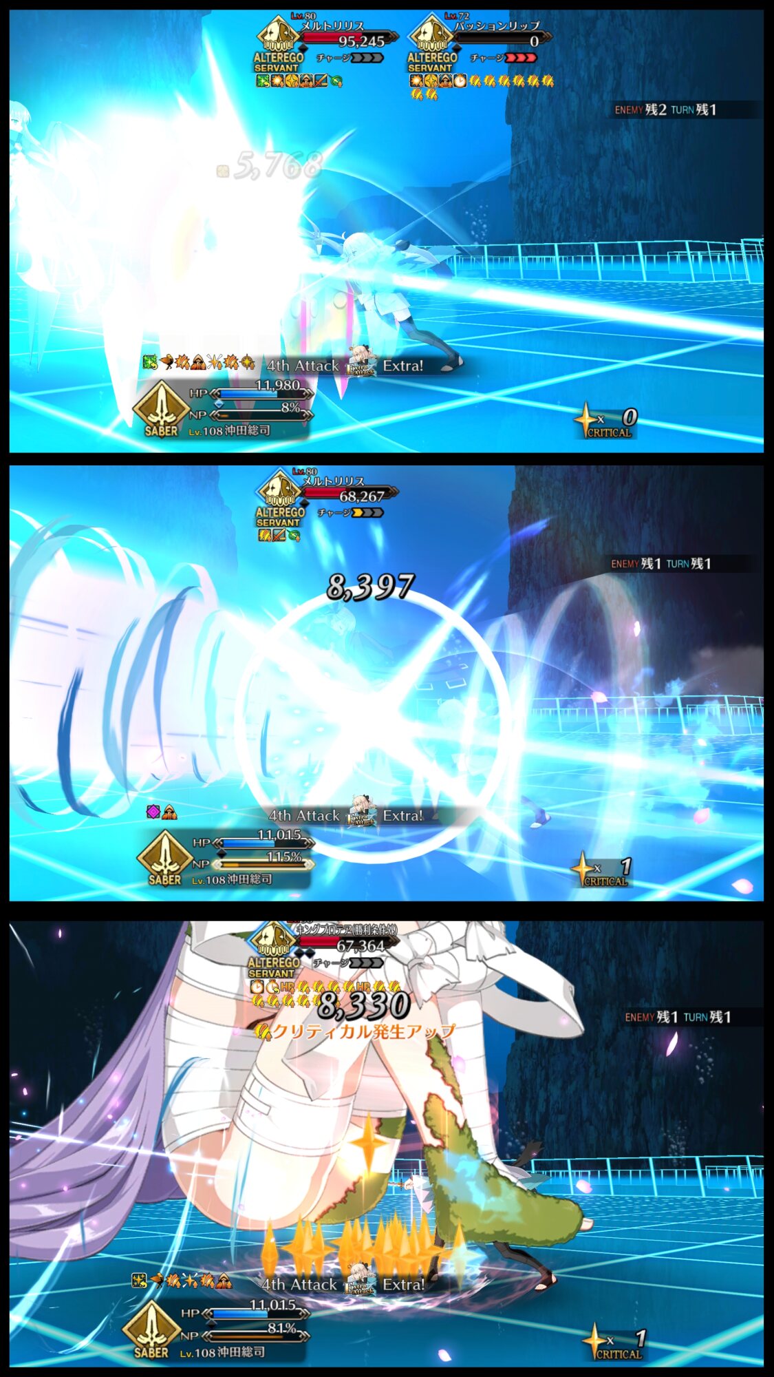 ・宝具の溜まった3騎でリップを撃破