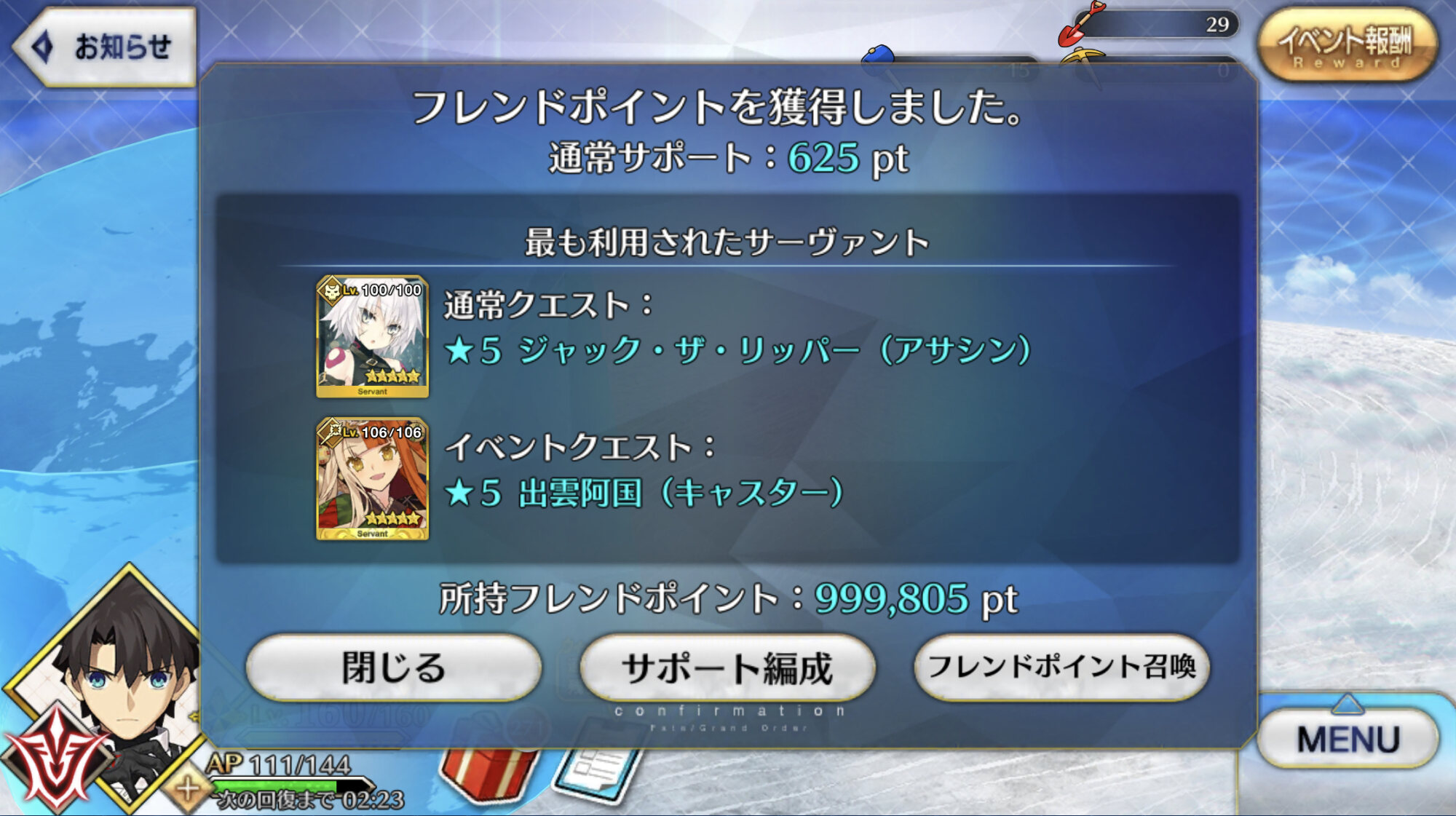 実装当初にカレンスカディボイジャーの周回パが発見されて、あの後アペンドNPやら宝具強化やらで追い風吹いてるとは聞いてるがところで今日からRoadto7の3章があると思うけど