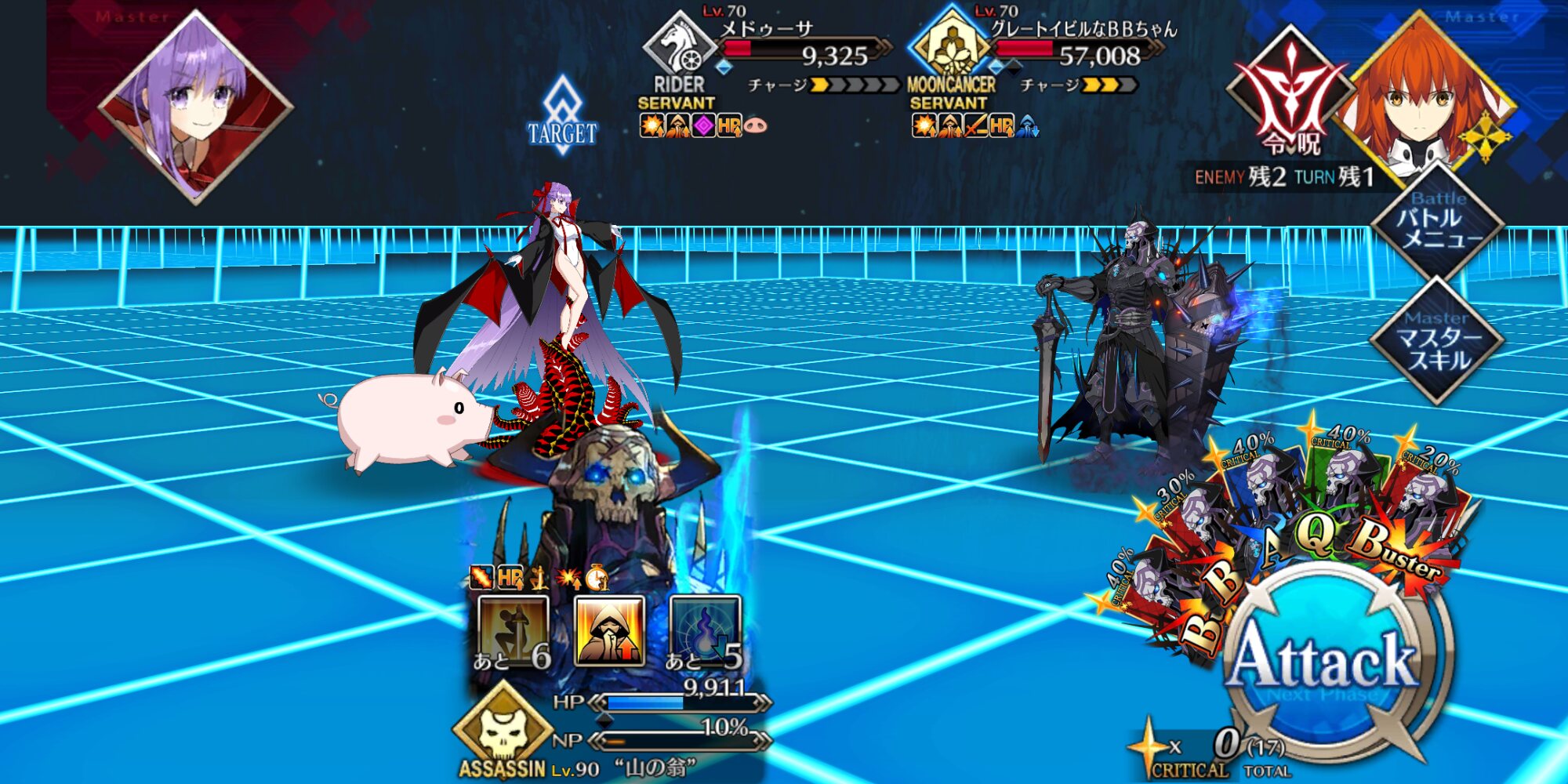 トリ子は未だに再臨できずにいるからモルバゲメリュですわね。モルガンが豚化で落ちたしバゲ子も落ちたけど後はメリュジーヌが雑に蹂躙してくれましたわ。等倍でも火力高すぎません?>>105