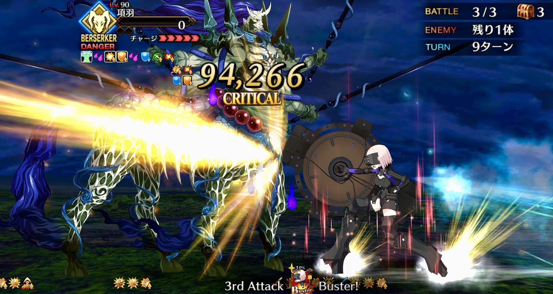 スター獲得と攻撃前クリティカル威力UPと他メンバーのカード選出不可状態(3T)で1T後スタン(デメリット)で盾乙