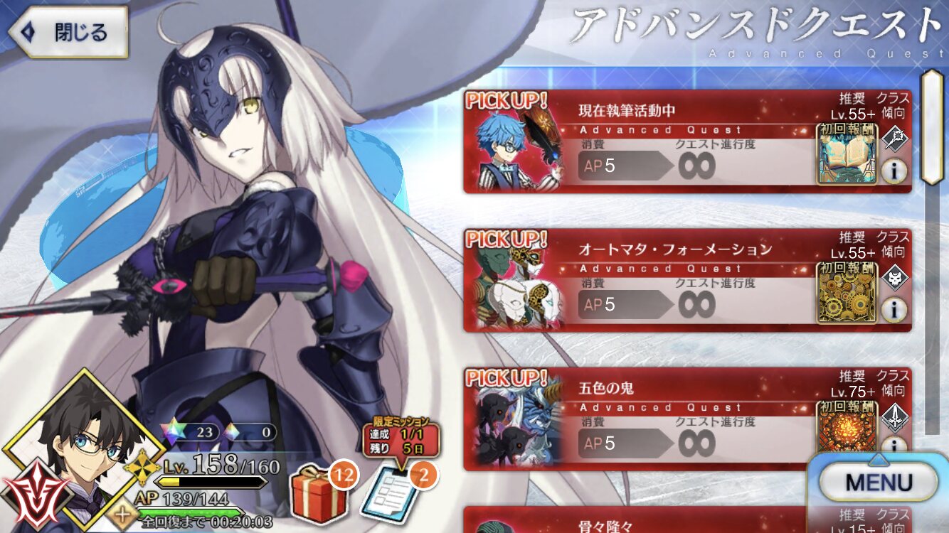 アドバンスドクエストはフレンドのサーヴァント借りることが出来ないのが悔やまれる……!