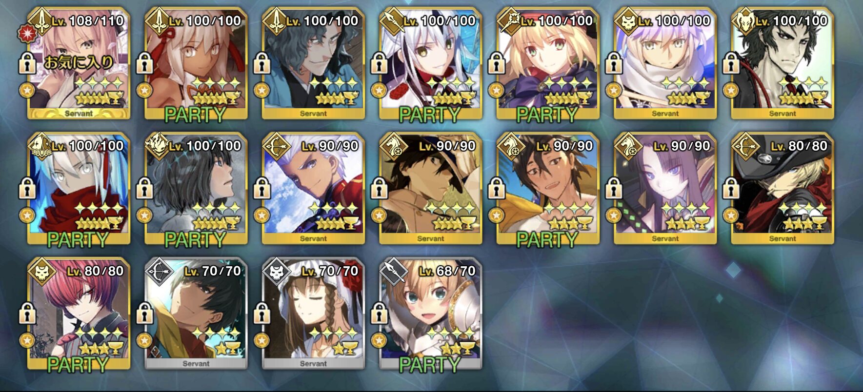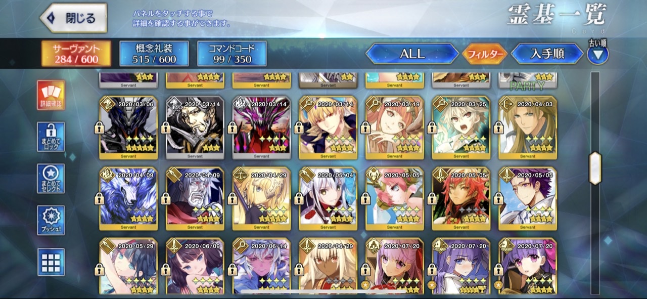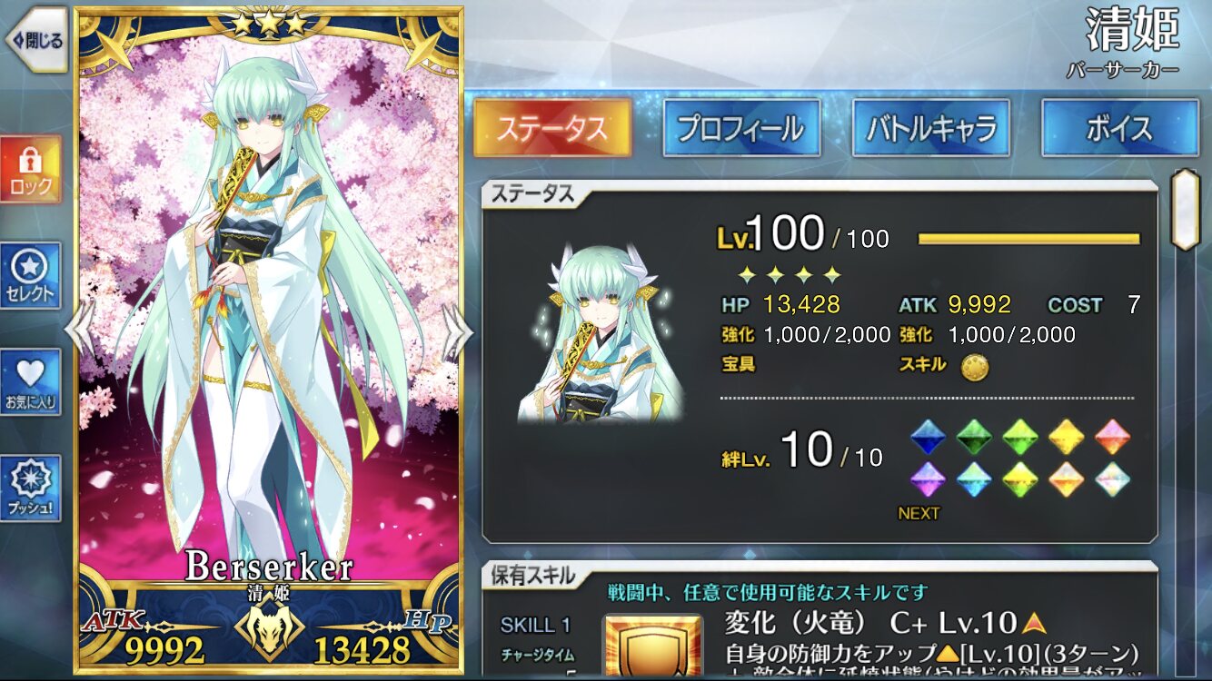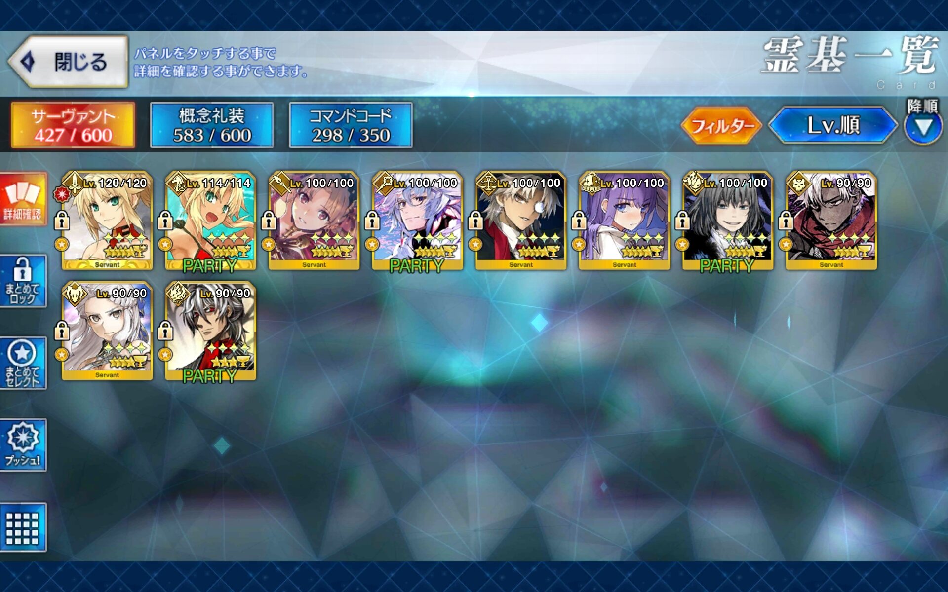 120はアタランテが最初なのでアタランテの宝具レベルが4より上にいかない限り誰もそれ以上に行けないんだ。ウチの聖杯組(予定含む)はこんな感じですね