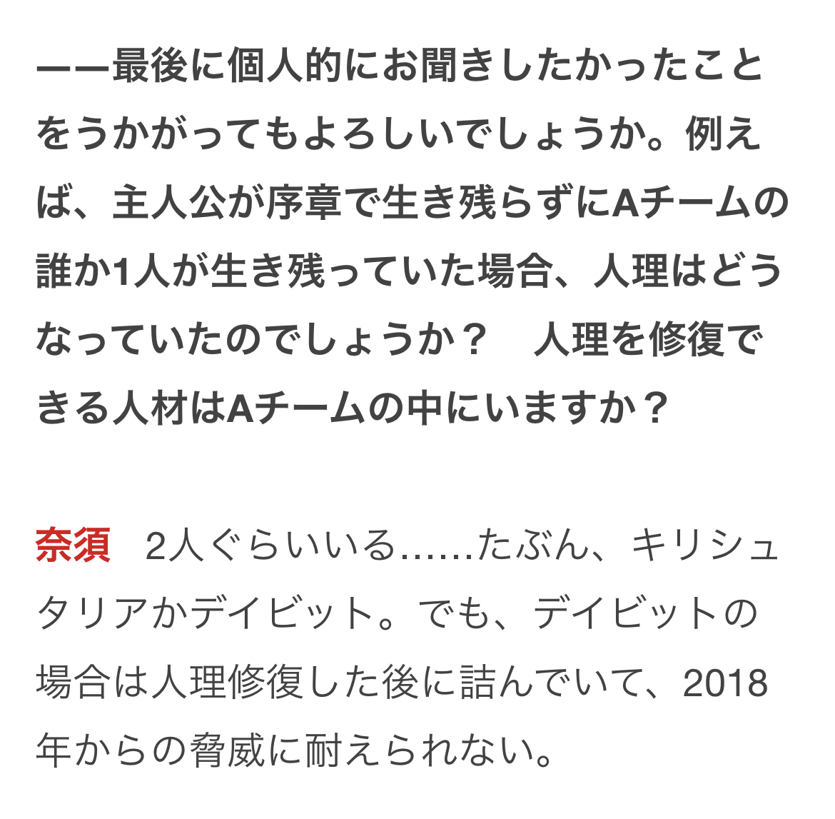 デイビットの本質が生きるために活動する狩猟生物ならばクリプターと担当異聞帯の内面は照応するという説と照らし合わせると死後でも生きていける世界になってもおかしくない気がする