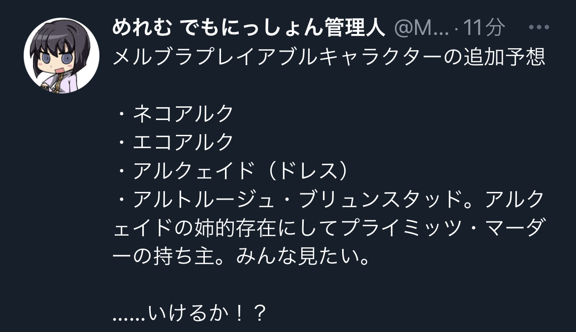 流石にシオンやワラキーはこないだろうし、セイバーさんみた位なコラボ枠もあるか?>>107