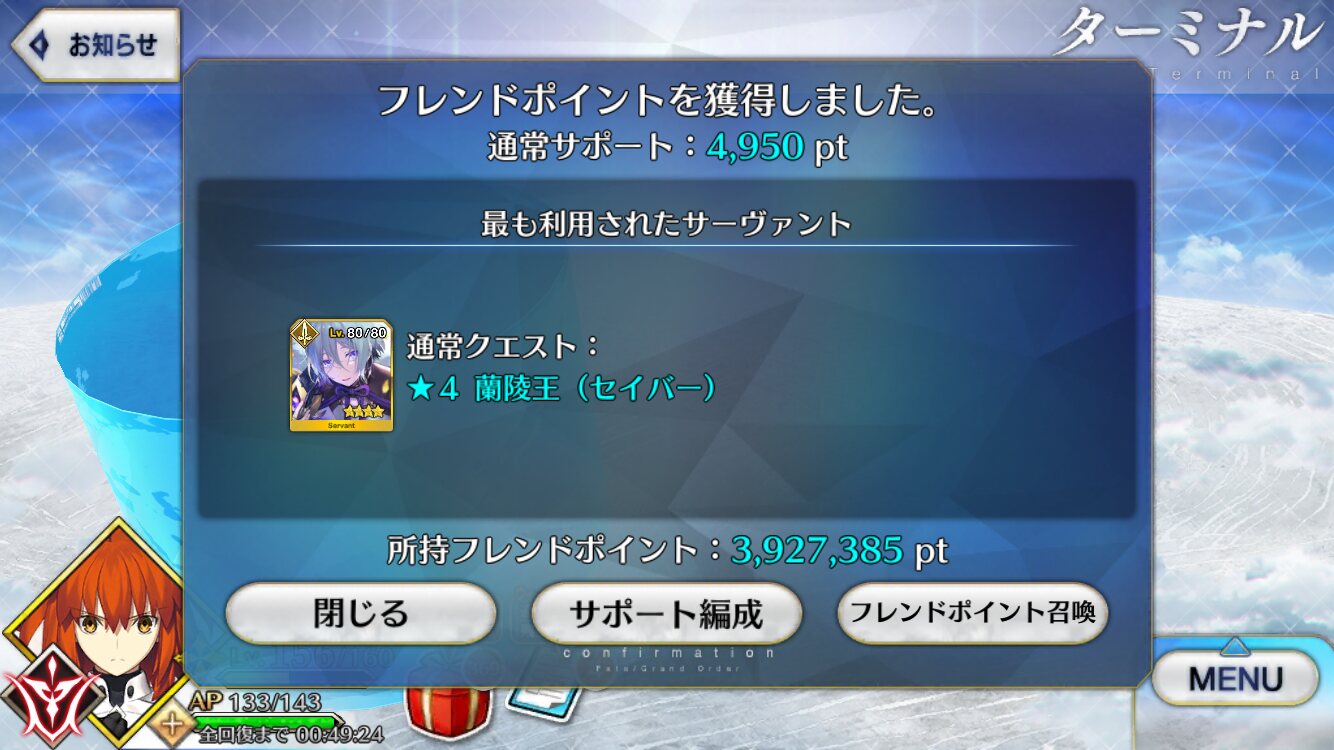 何もない時は宝物庫でAP使ってるよ。>>917