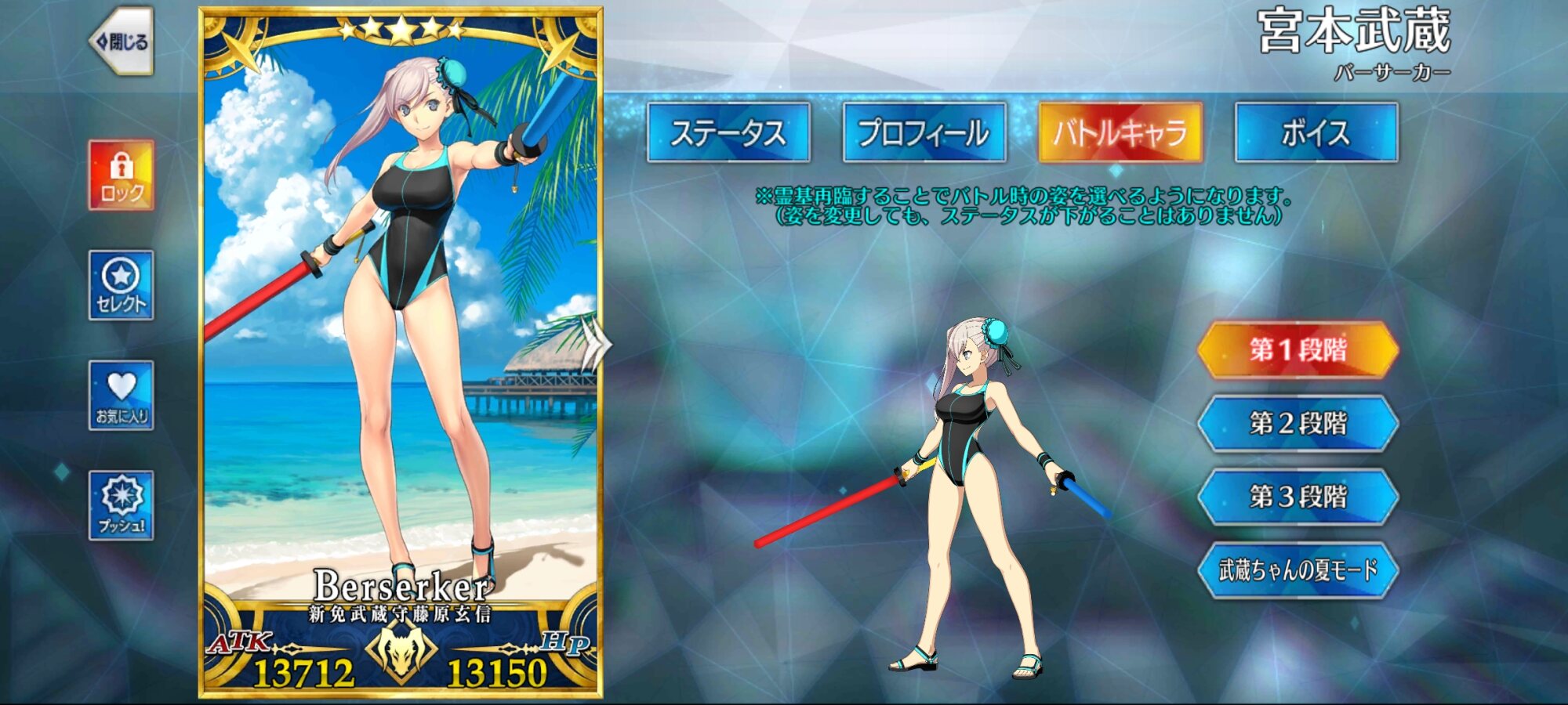 おや、今ならなんとピックアップされてますね!水着武蔵ちゃんセミラミスモレーというパーティーで回したけど「チームワークとかねえ。スタンドプレーだけで解決しやがった」ってなるからステとスキルの暴力はすごい