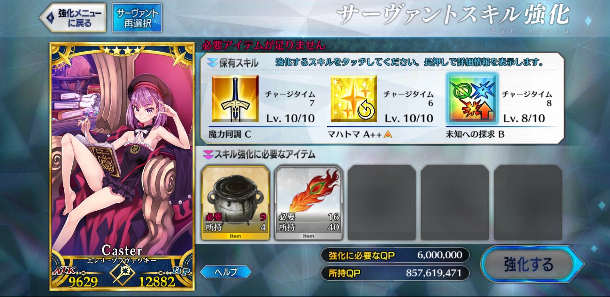 それにしても魔力同調はともかくとして、未知への探求よりマハトマが優先してスキルLvを上げられるようになったのだと時代の移り変わりを感じずにはいられません。NPチャージは偉大だよ
