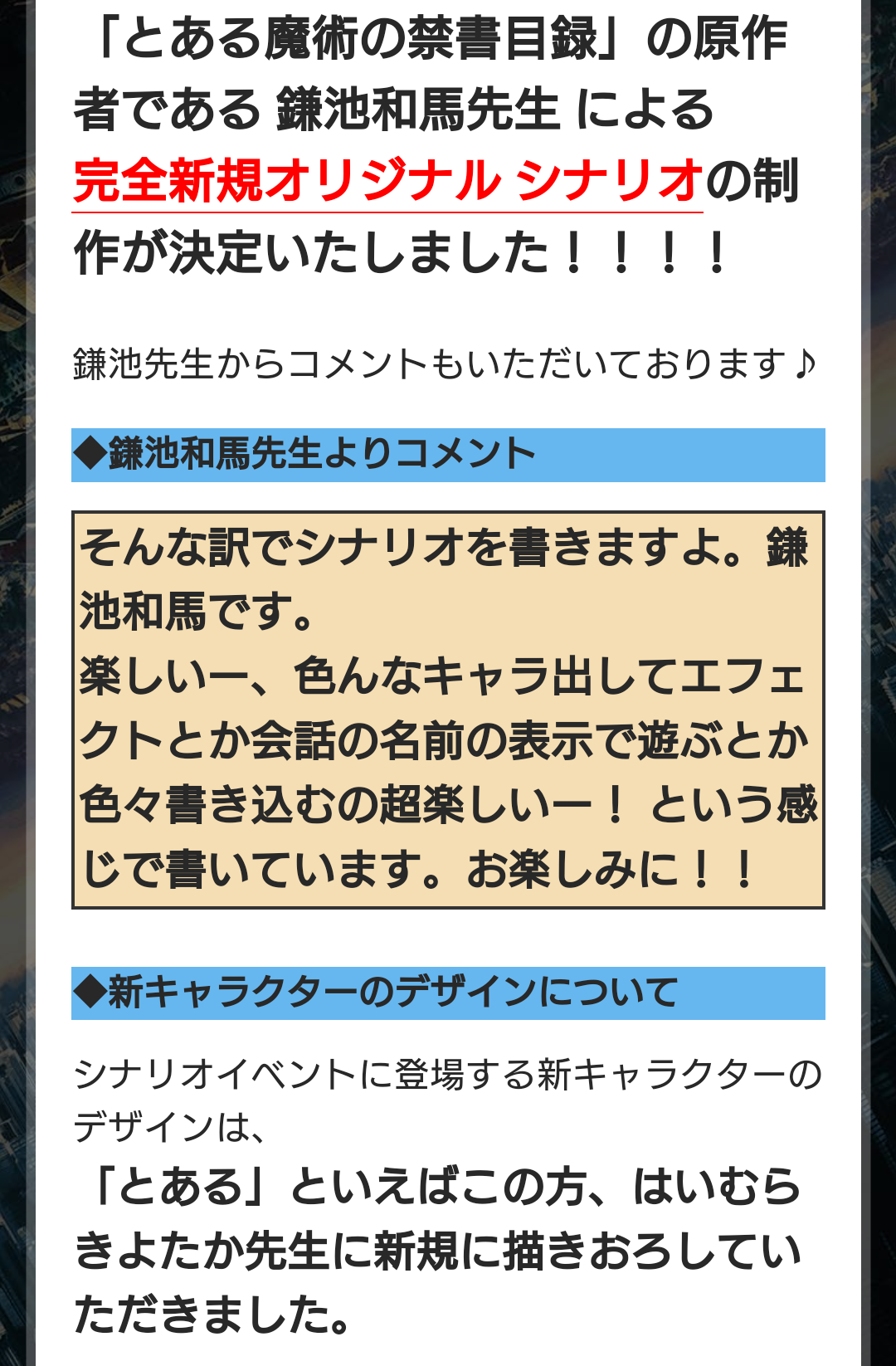 鎌池先生書き下ろし新規シナリオがソシャゲに来るっぽいですが長さどんなもんなんだろうね