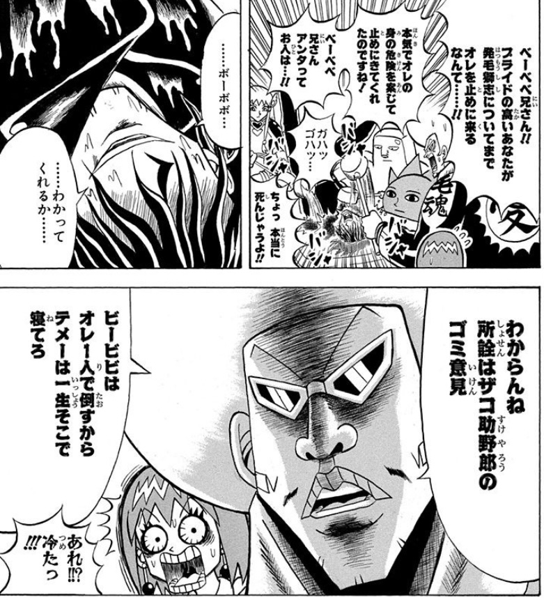 あと説明しないボーボボも悪いけどビービビにつくこと自体が毛の王国に対する裏切りに等しいからなあ「そんな言い方するなよ。…傷つくよ。」