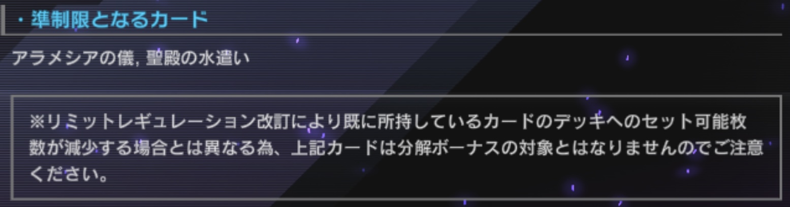 せっかくの新カードを制限スタートにするわけにはいかないから運営的には準制限が落としどころなんだろ>>86