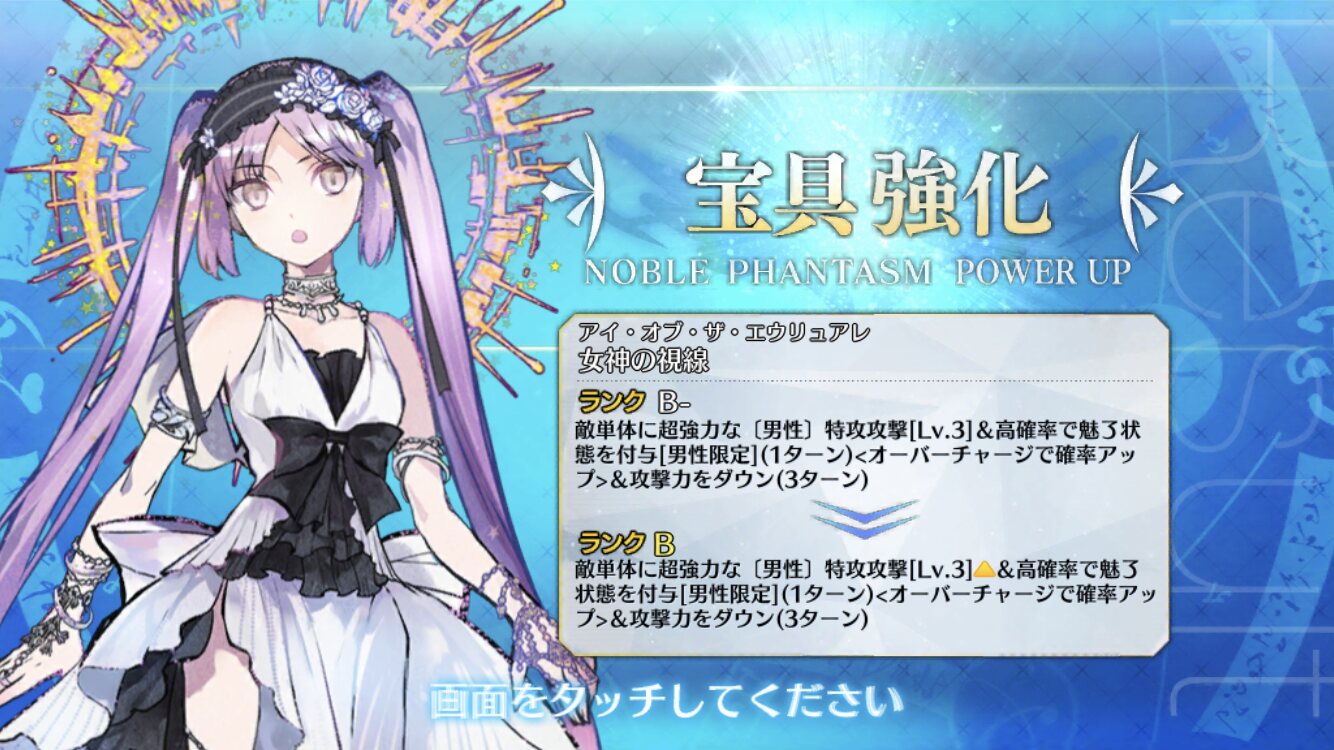 これでも真面目に解説しましたので。ホントに無難に使いやすいアタッカーだし、キャストリアとの相性もいいから、選択肢には入るのよ。宝具強化貰ったのもデカい。>>81