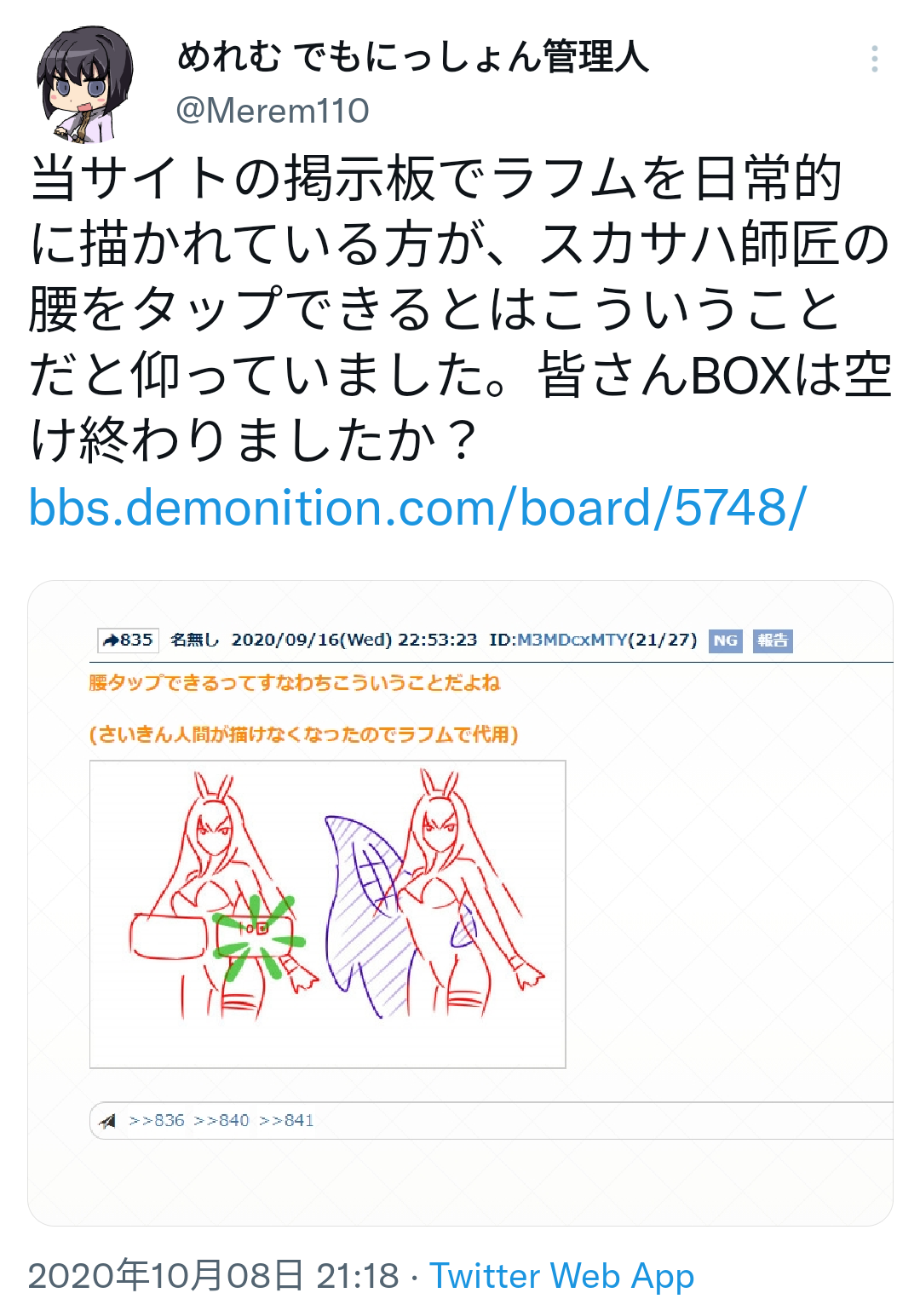 型月ネタバレ総合雑談スレ3 https://bbs.demonition.com/board/4648