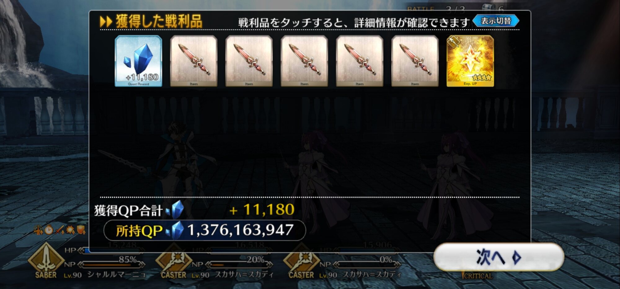 誰かが言ってたけどA宝具持ちやA攻撃多めのメンツが居るとキャストリアが宝具撃ったあとAチェインとかやってNPを貯めやすく出来る感じかな。>>27