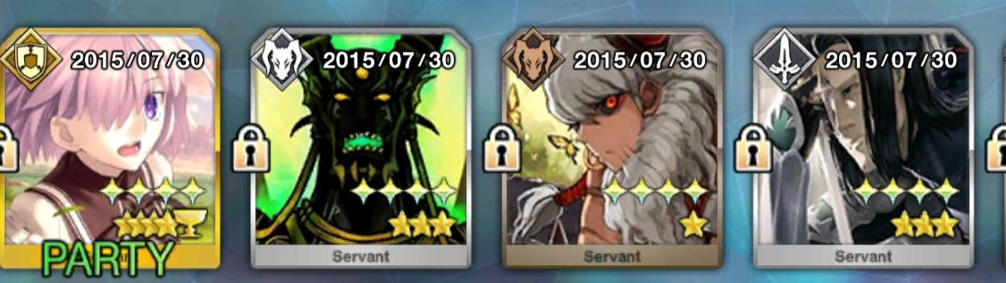昨日の問題 サンタリリィ、邪ンヌ、ジャンヌ、水着ジャンヌ、水着邪ンヌのうち幸運がC以下の者 の答えはサンタリリィと水着ジャンヌ以外の全員でした