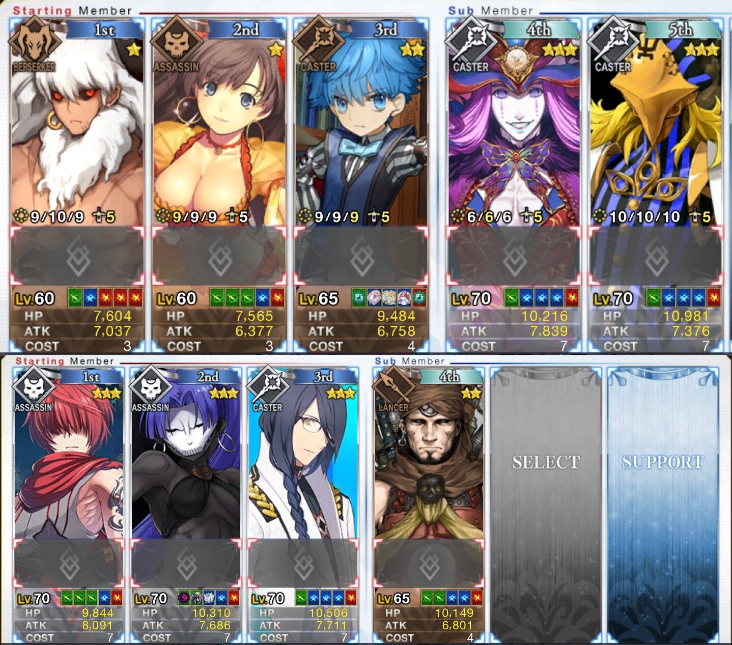 アサシン:サンソン、ファントム、マタハリ、ジキル、エミヤ(殺)、百貌ハサン、酒呑、静謐ハサン、水着スカサハ、クレオパトラ