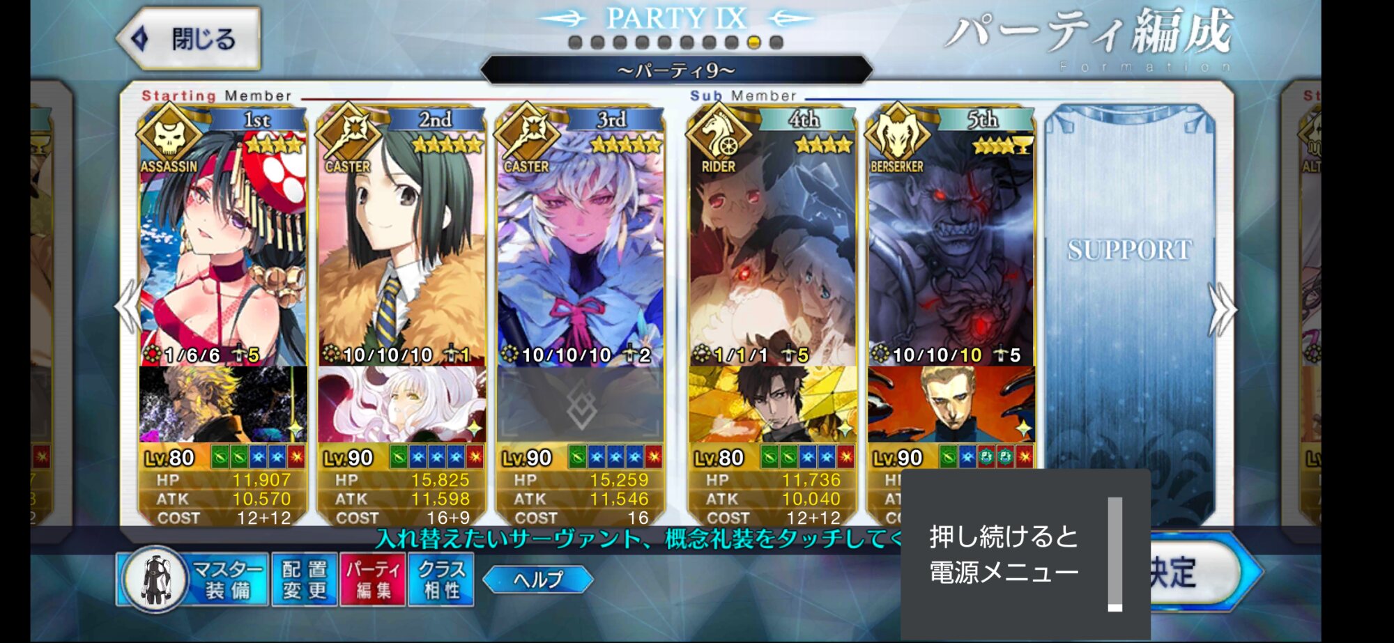 キャスター:ジル(術)、シェイクスピア、メフィスト、アマデウス、ハロエリ、ナーサリー、パラケルスス、バベッジ、エレナ、エジソン、ジェロニモ、アイリ、三蔵、ニトクリス、ダヴィンチ(術)、水着マリー、ギル(術)