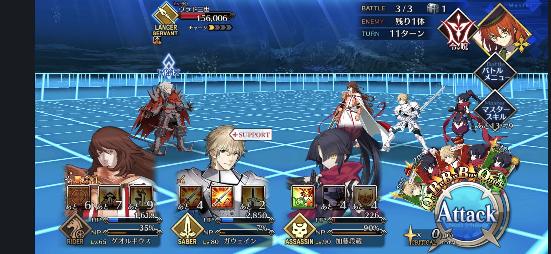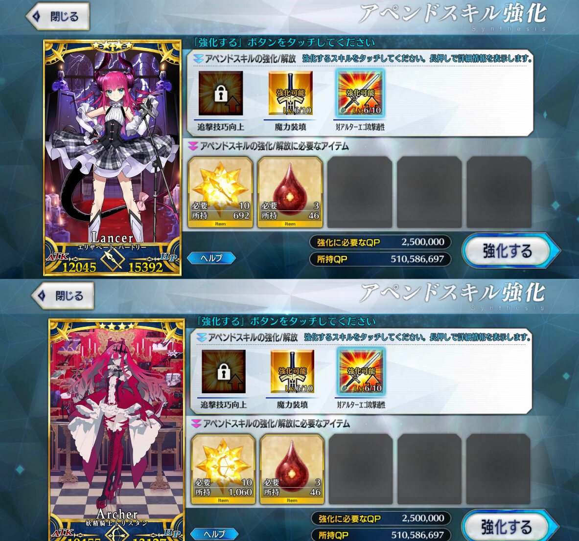 例外はいますが上げる優先順位としては、NPチャージ>バフ、星だし>耐久、デバフ>>ガッツ辺りです。火力に直結するチャージやバフを優先し、2度目の再使用が見込めないガッツは後回しでも問題はありません。>>956