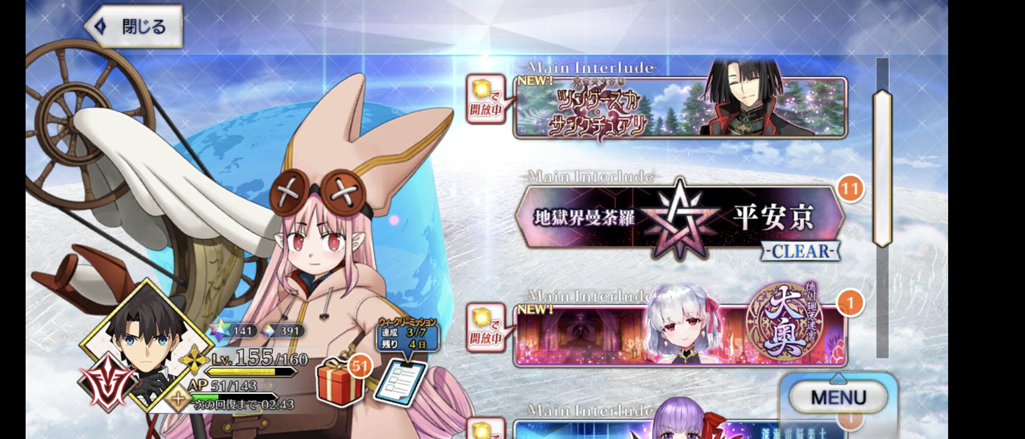 拙者が仕事中に流血新規の方が1部を踏破したそうで。アドバイスにもならないアドバイスですが、ここからは難易度が大幅に上がるので1度足を止めて、星5交換券はもちろん、近々復刻されるであろう夏イベの配布、可能なら福袋を駆使して戦力の強化に努めることをお勧めします。