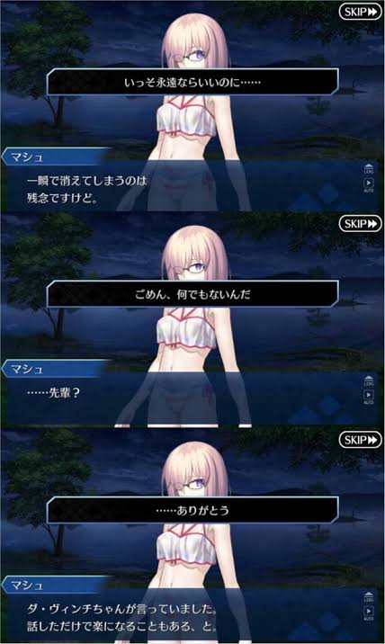 ずっと利用されて邪魔になったら排斥されるのを繰り返してきたからこそこれまでの仲間たちと同様に接してくれるマシュの存在は救いだったんだろうなって……>>977