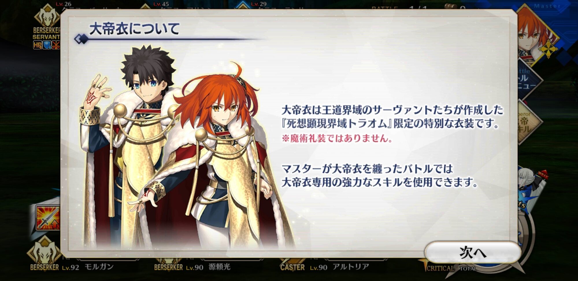つかこれで、決戦礼装の立ち絵はあの礼装のみに使用するって見ていいな。あのポーズは他の礼装でやると覚悟決まりすぎててかえって合わない気がしてたから個人的には納得>>935