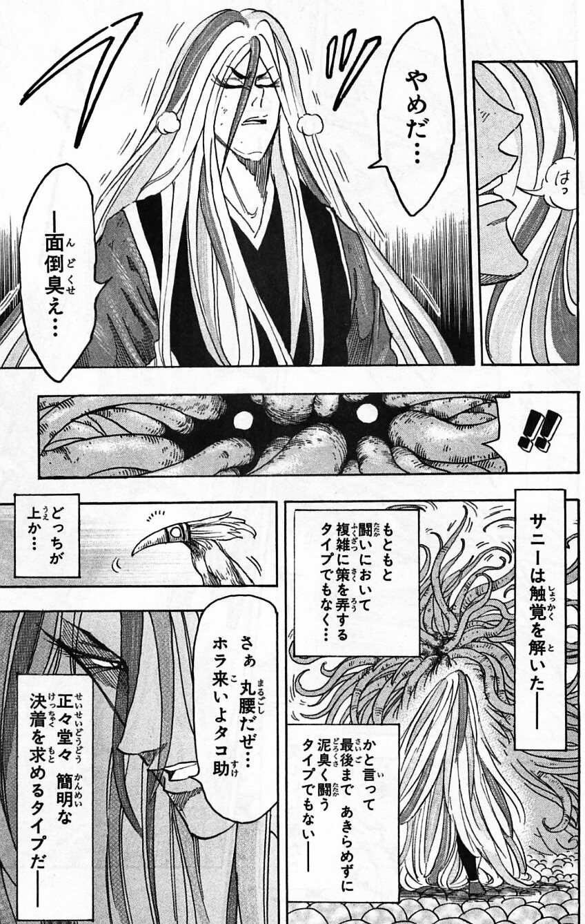 しかも、土門と戦ってた時の蛭湖は、血液の入った瓶を大量に配置していてかなり蛭湖に有利な状況だったし(瓶は死愚魔に破壊されたけど)>>60