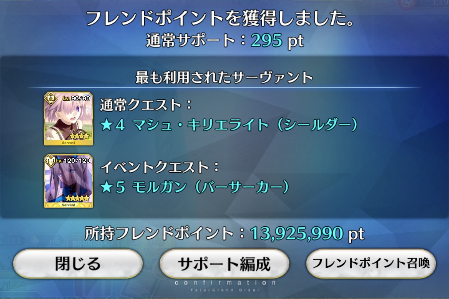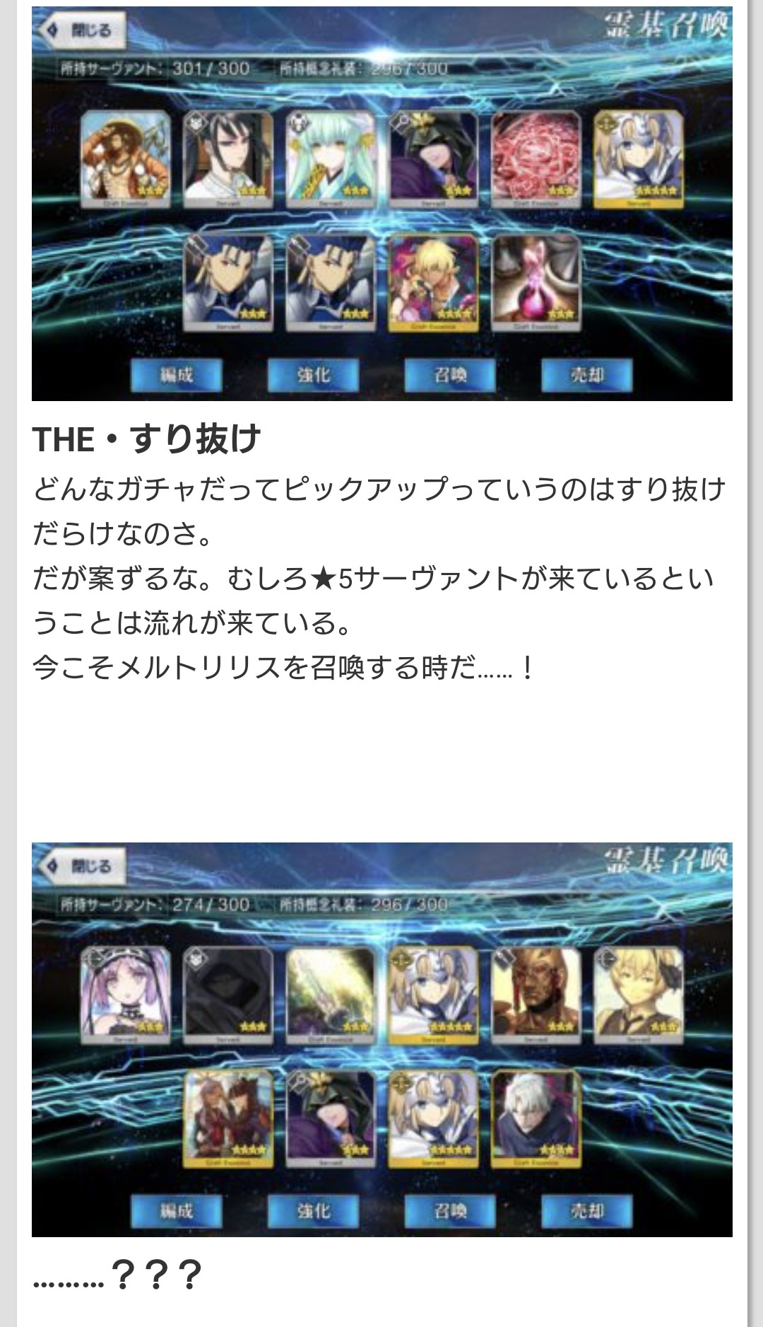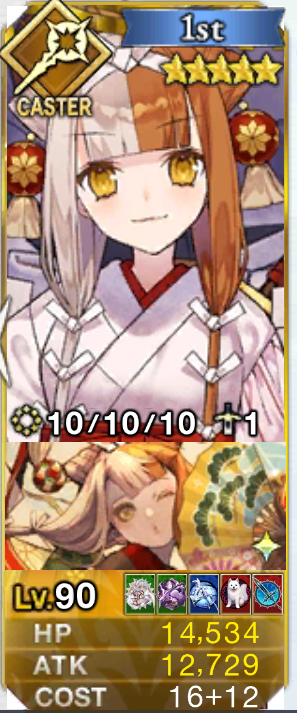 来るまでに石400個近くと呼符40枚使っちまう大惨事だったけど、これで最低限仕事してくれるでしょう>>869