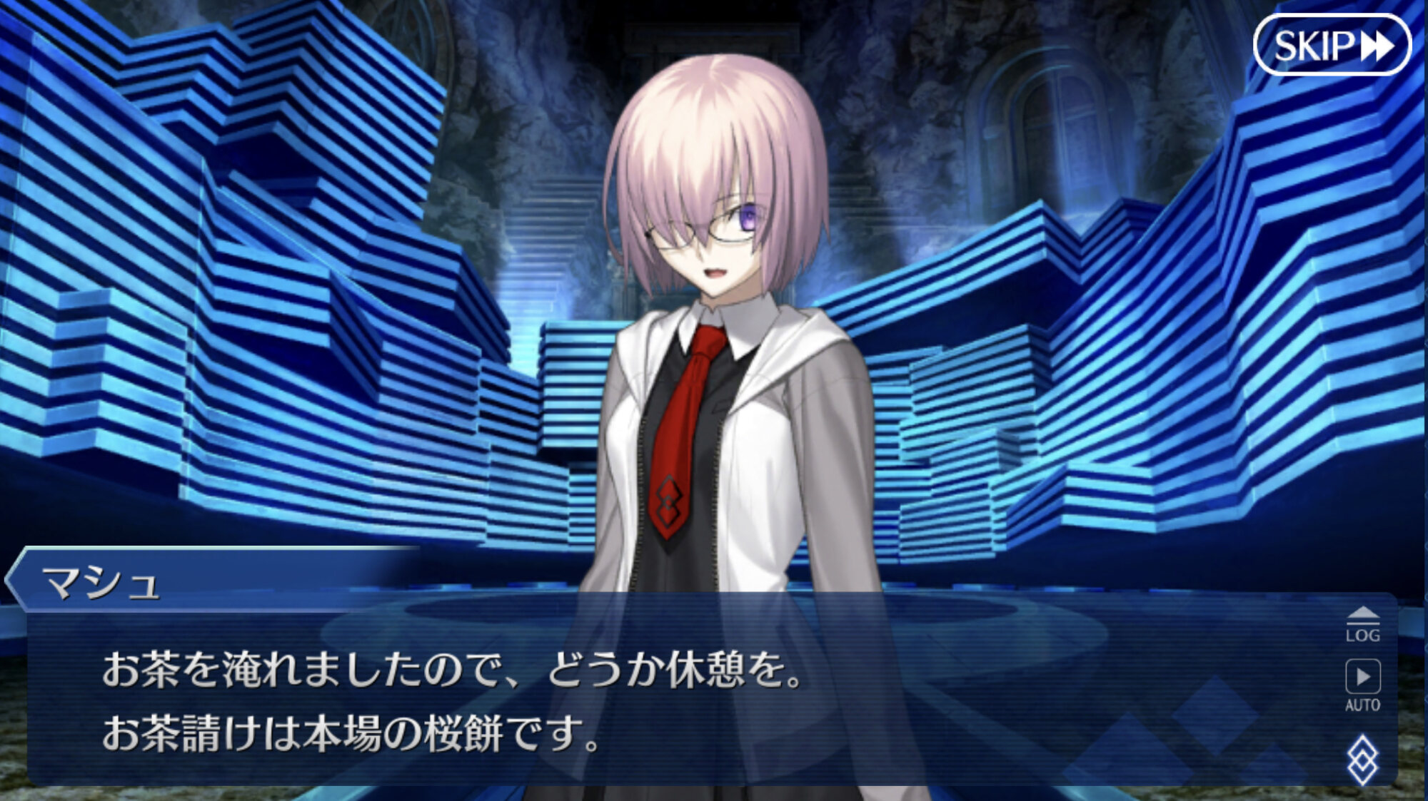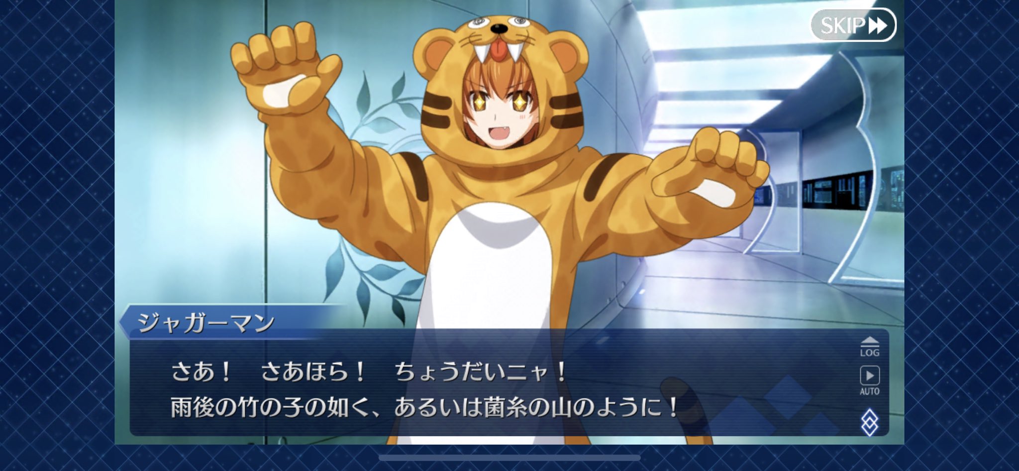 式「あーマシュでないか久しぶりーだな。」