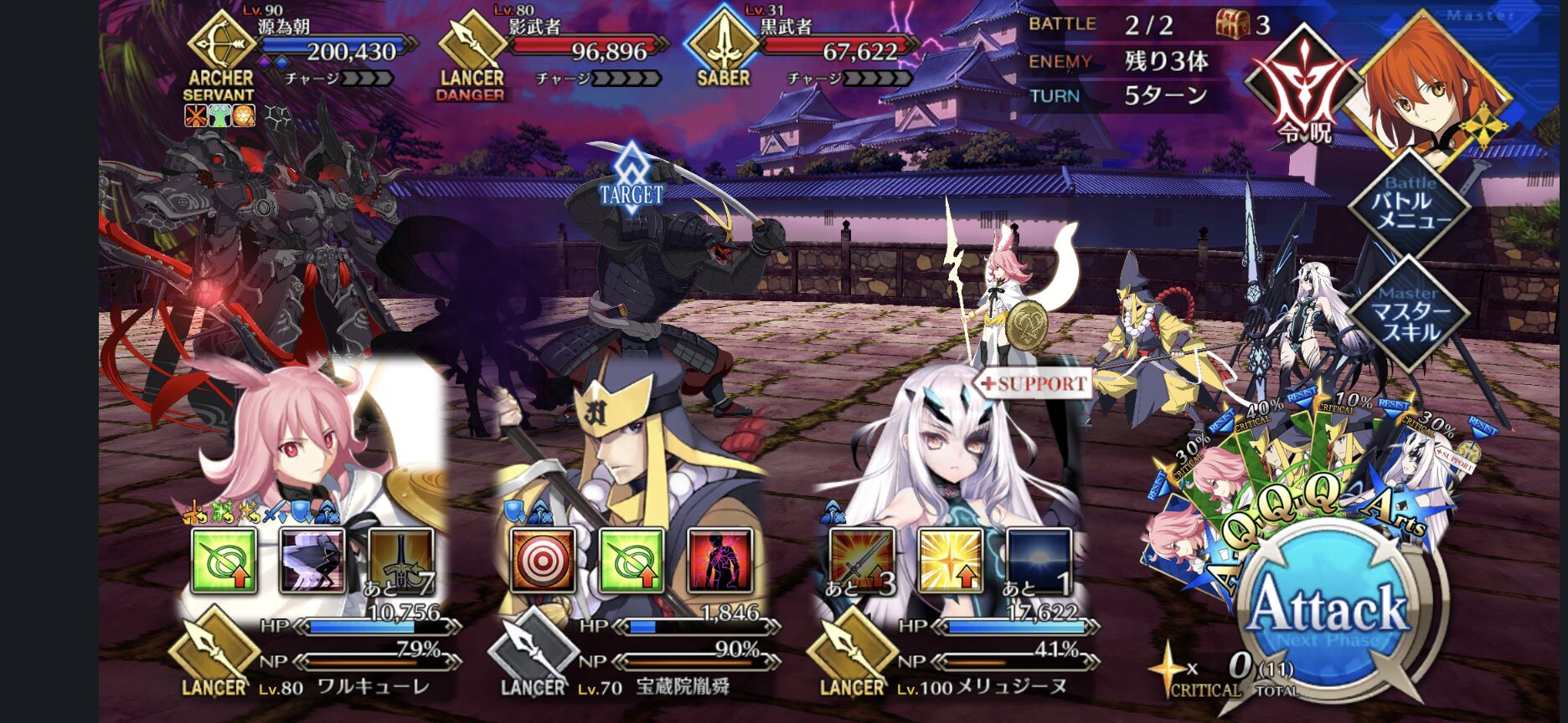 ちゃんと育てたサーヴァントだとタゲ3ターンで耐えちゃう可能性があるから、確実に落ちるためのレベル1タゲって戦法があるの