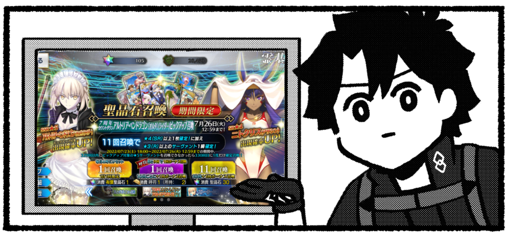 26、7、8で23枚になるのか…なんでこう28日に運命の日が多いんだ俺は>>870甲殻類鯖とかクトゥルフ系フォーリナーの第3再臨の墜ちた鯖じゃねーか