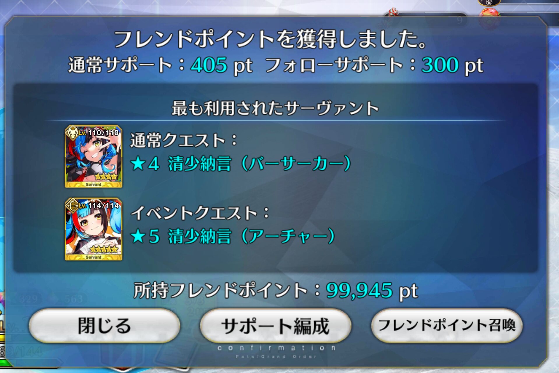 最初はオベロンはいるしいいかなだったのに、偽典の帰還が終わったらと言うか最後に二世へ事件簿の話を聞くところ見たらもう引かずにはいられずに、回したらそのまま来てくれたのはガチで嬉しかったわ……>>885