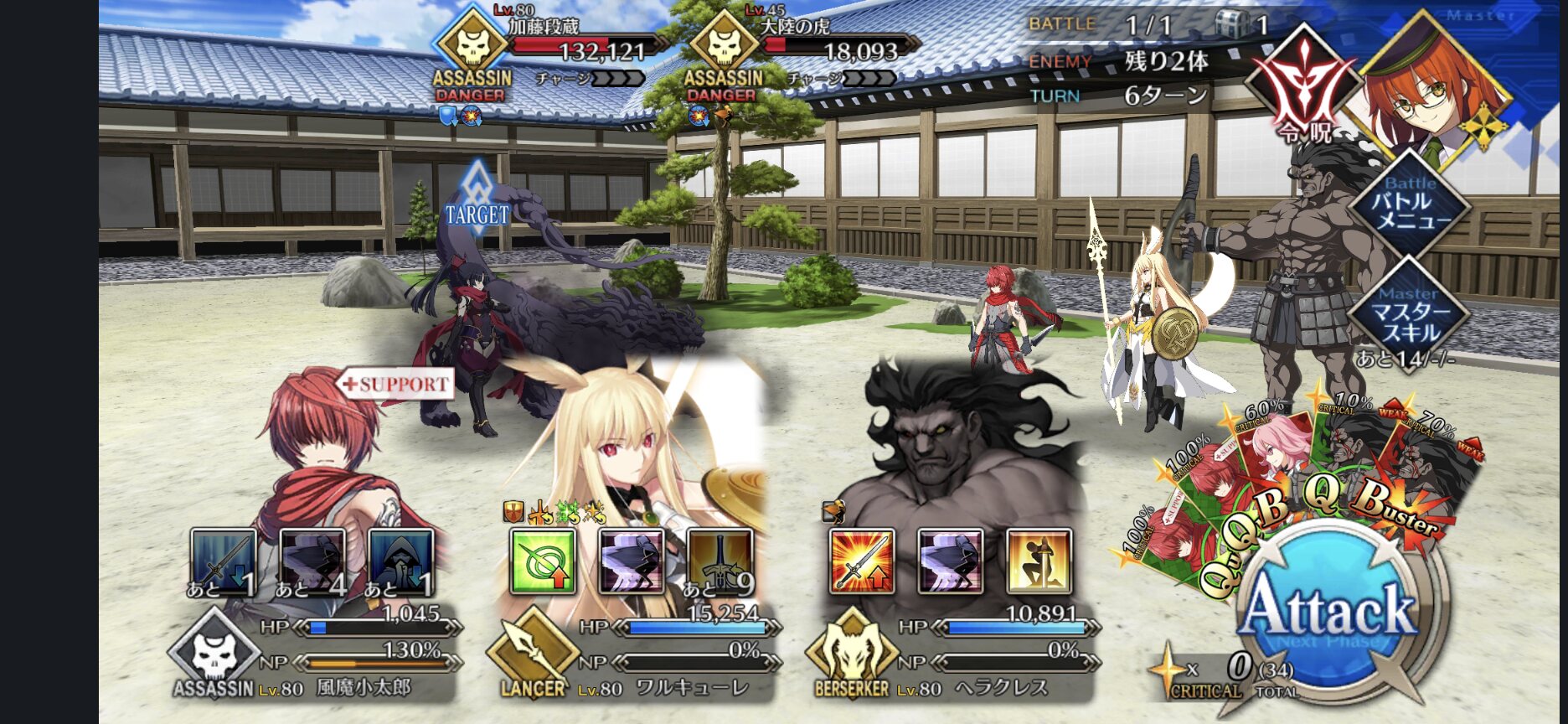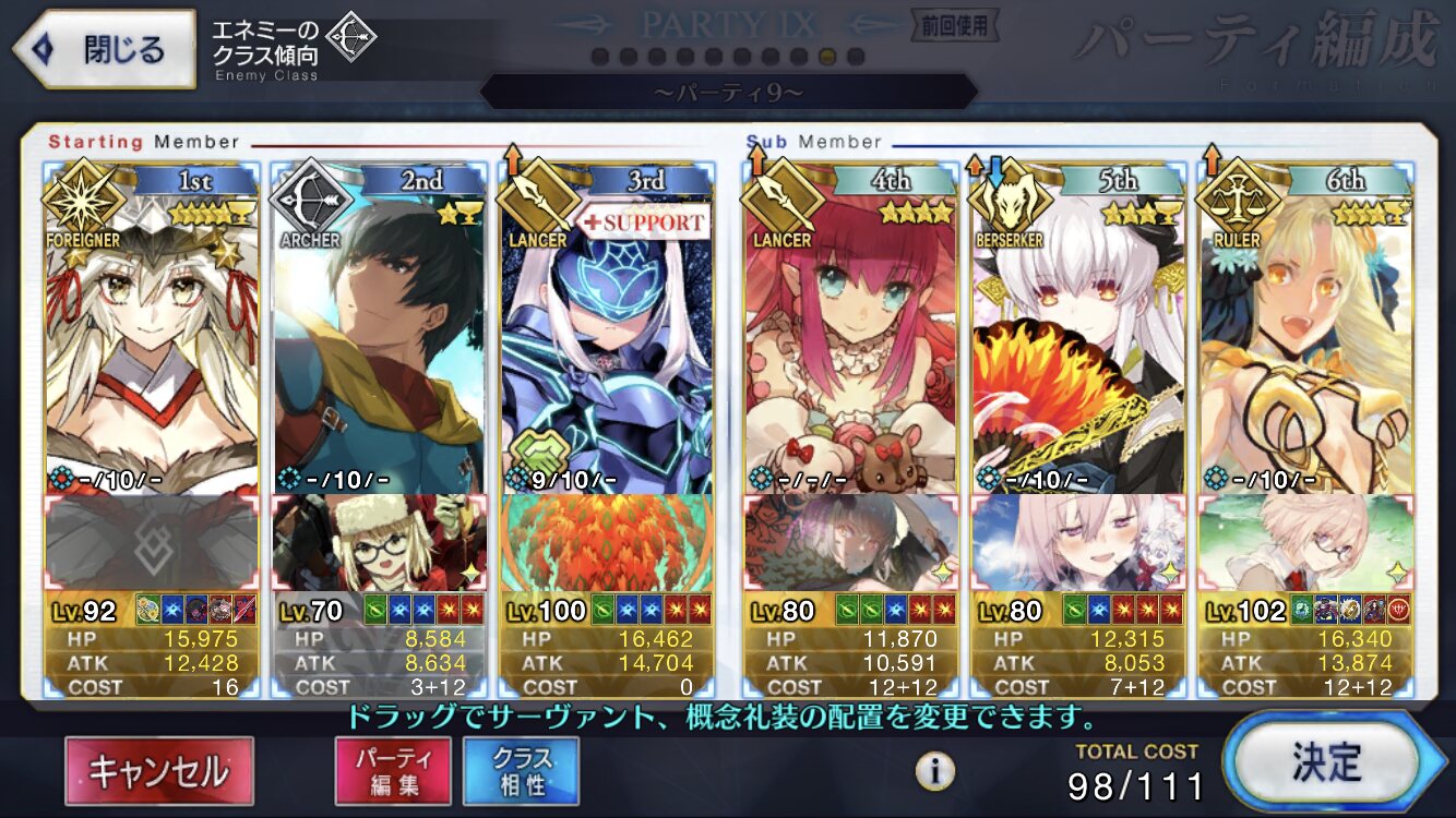 HPめちゃくちゃギリギリだな……うちはシバの女王とかキルケーとか居たからなぁ。キャスターは中々揃ってた。