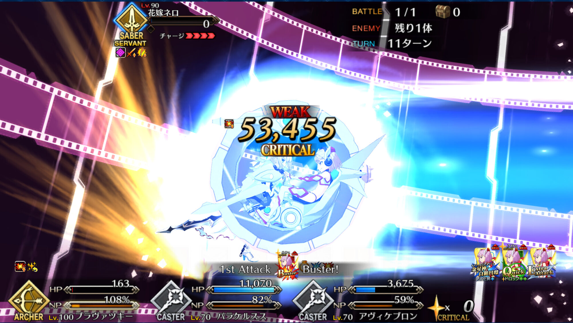 1ターン目 戦闘服ガントで足止め(できたよね?) シェイクスピアでNP増加を先生 オーダーチェンジ パラケル 自己NP増加+バフをクリームヒルト パラケル宝具、先生宝具、クリームヒルト宝具
