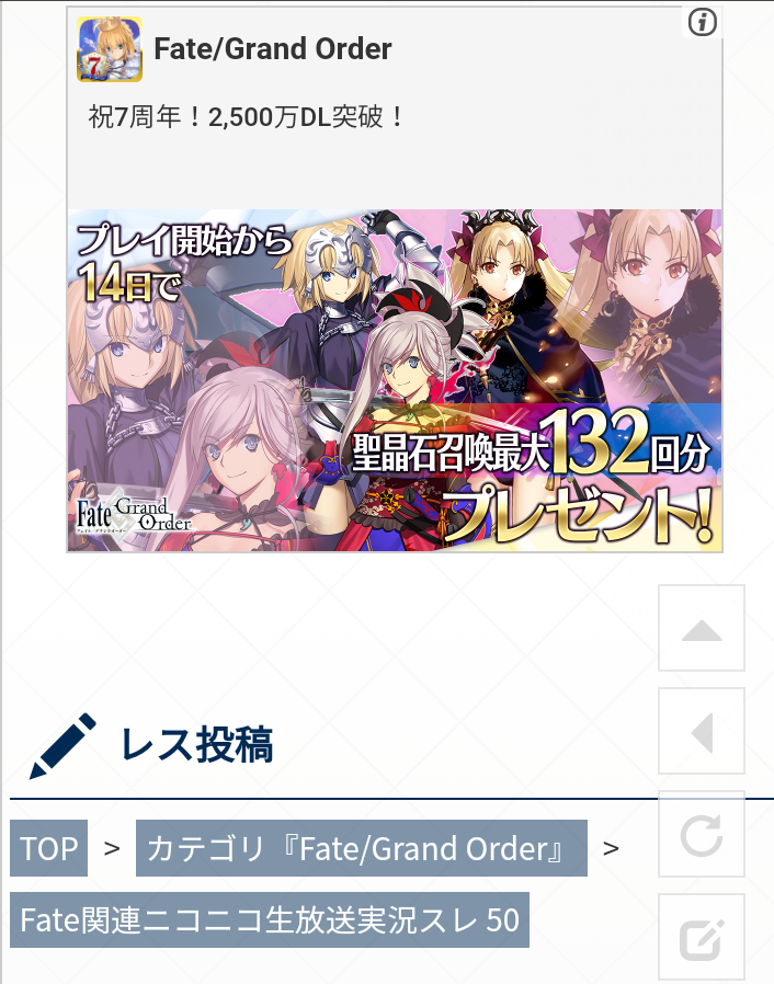 カテゴリは『Fate/Grand Order』を必ず指定してください。必ず前スレを使い切ってからお使いください