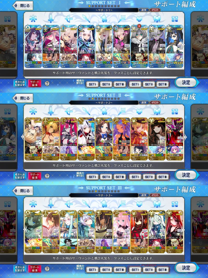 自分のサポ編成一覧を見れるなら、弓にモリアーティ(レベル100)とアルジュナ(レベル100)もいます。