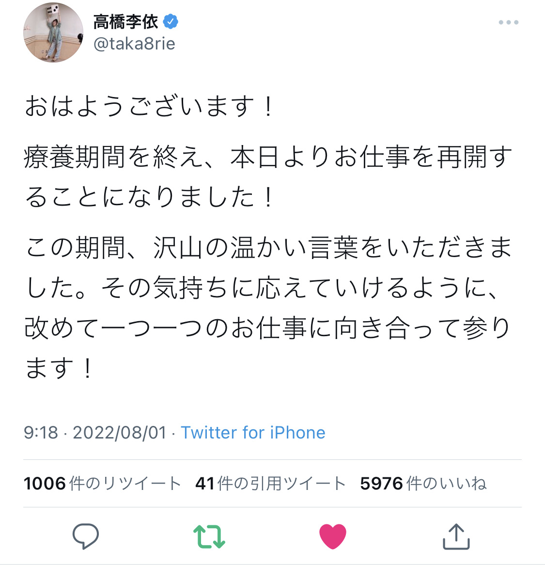 フェスも見られたそうで。回復されてよかった。>>936