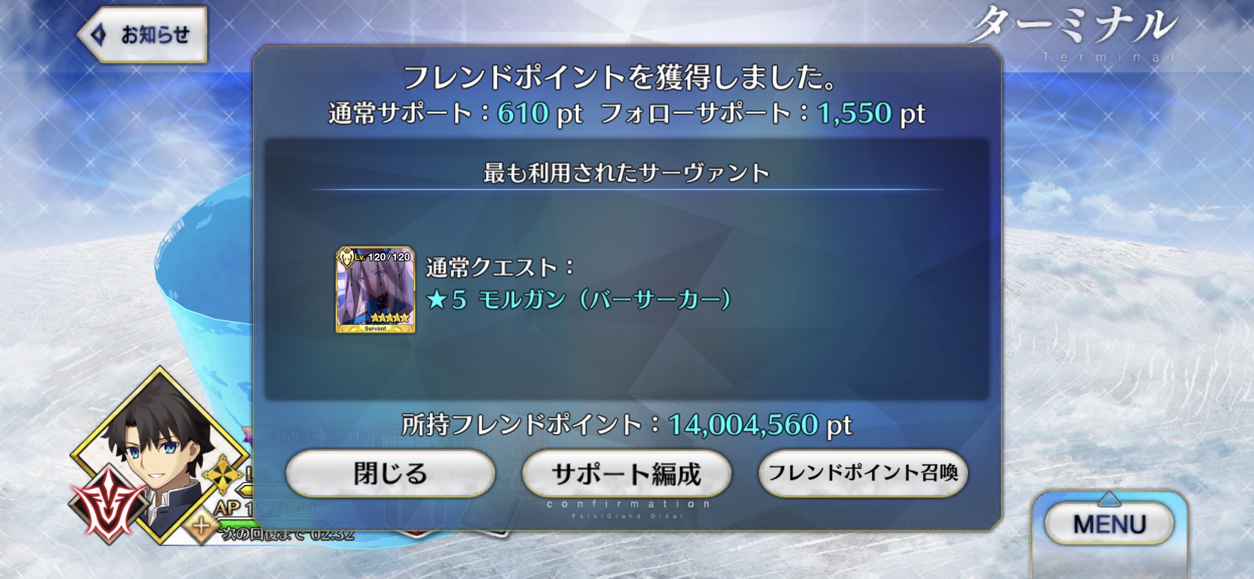 絶対に回させるという強い意志を感じた(こなみ)後先考えずに姫君に聖杯捧げてたから、そろそろ1画面のサポートのクラス枠を拡張してほしい