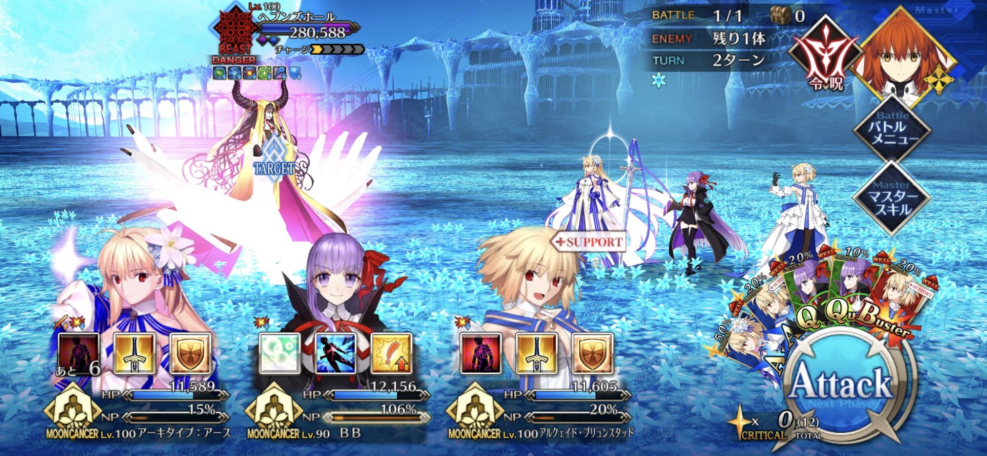NP50%からの単体宝具は配布のクロがいて、クロはA型だけどキス魔でQ顔負けのスター発生率を持ってる