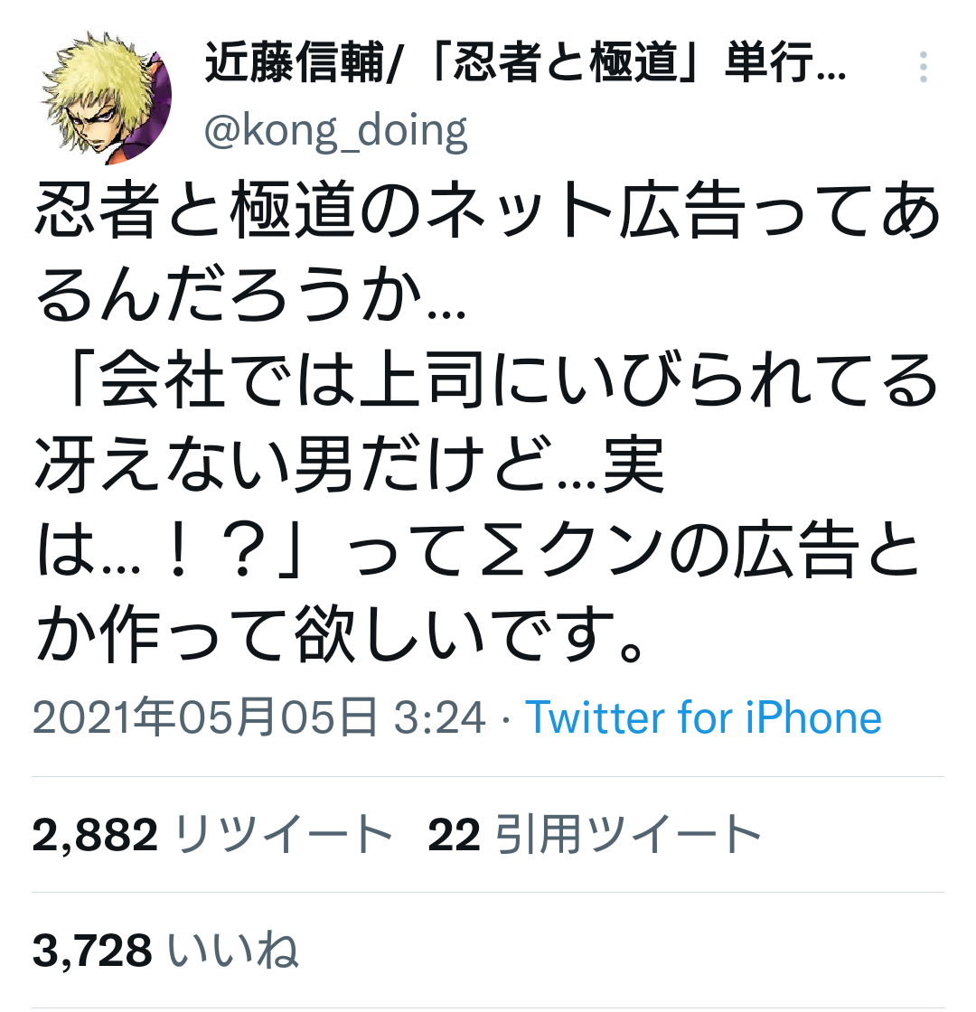 まぁ、スナック通いのおっさんは別に社会に対して迷惑ではないけど、生前イジメを繰り返した挙げ句に死後にもモンスターになって市街で暴れるのはもはやマイナスを超越したなにかなんよ。とうらぶの新キャラ発表来るたびに速水奨を期待してる人がいつもいるのですっかりそのイメージある