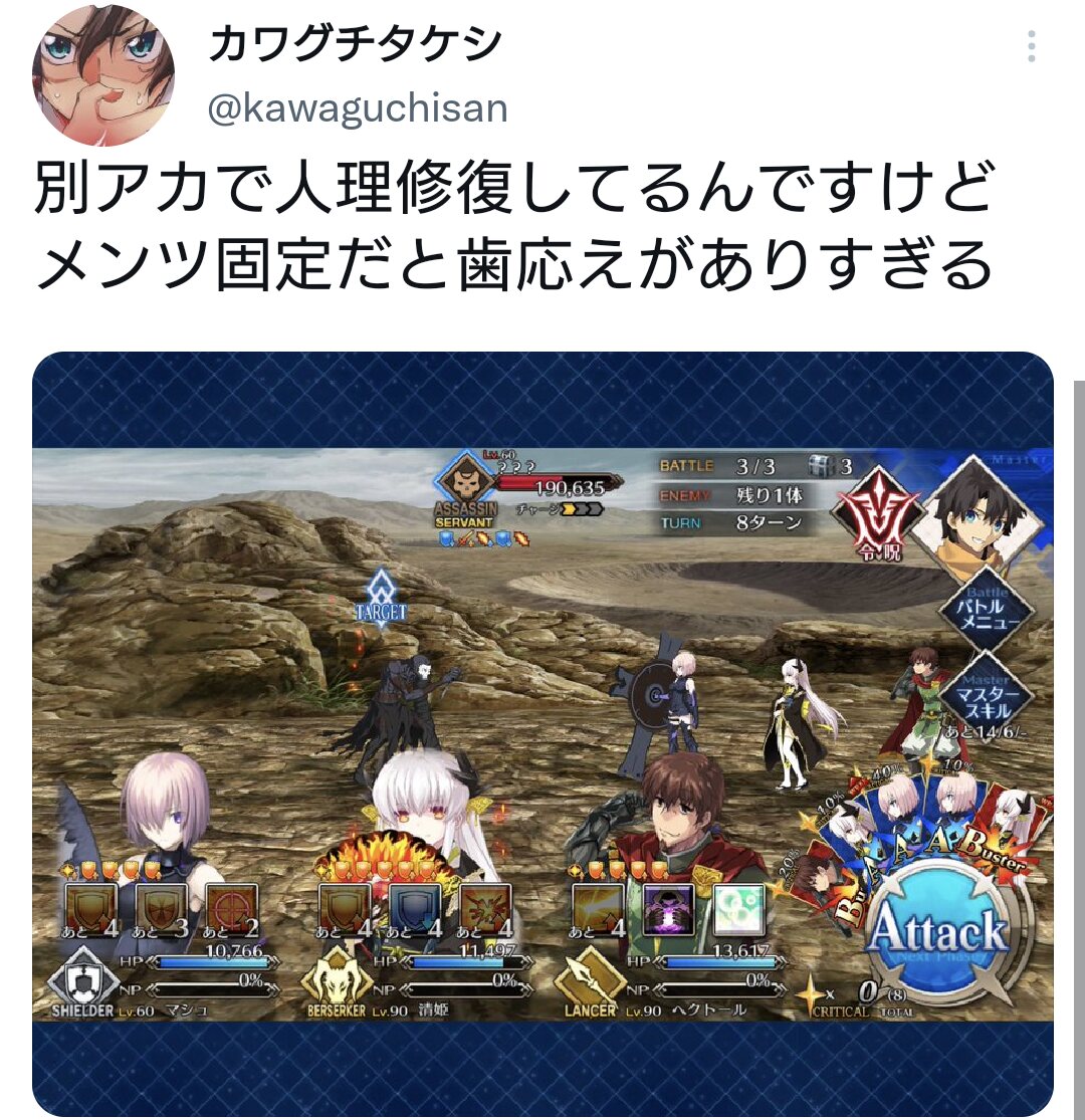 胤舜が防御ダウンのデメリット無しで攻撃力50%とクリバフ100%の補助宝具持ってるし、そのくらいで全然構わないと思うところで全く関係ないけどアオジタトカゲってなんかコーギー犬みたいで可愛いよね。