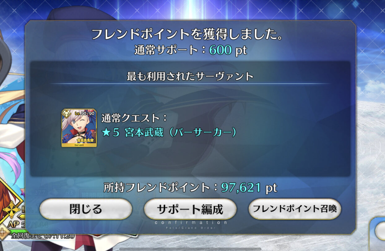他マスターのサポート武蔵ちゃん……ハァハァ……そういえば、FGO本編だと武蔵とエミヤって戦ったことないよね。