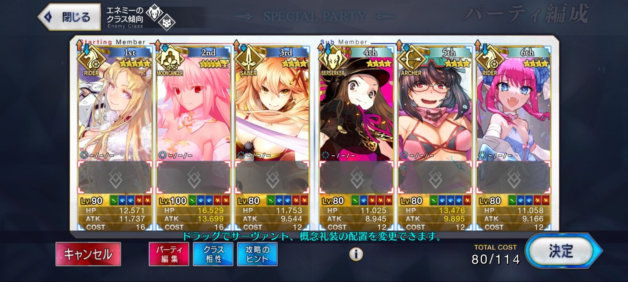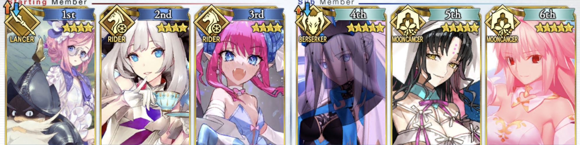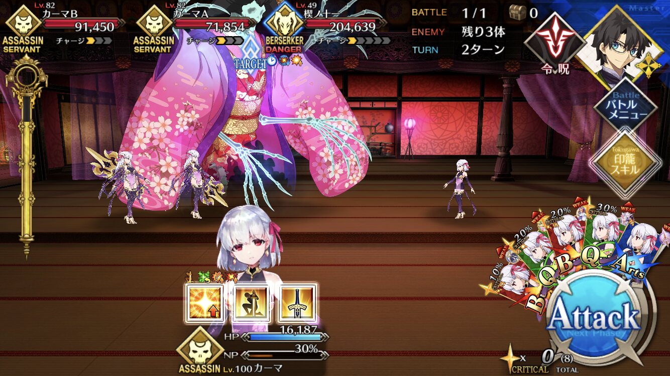 ↓これはつい最近の歯車ハントで使った編成なのだが(メリュジーヌもアペンド2解放してます)、アペンド2を開けることで、モルガンスキル2のNP20をメリュジーヌに回すことができて、宝具が打てる。