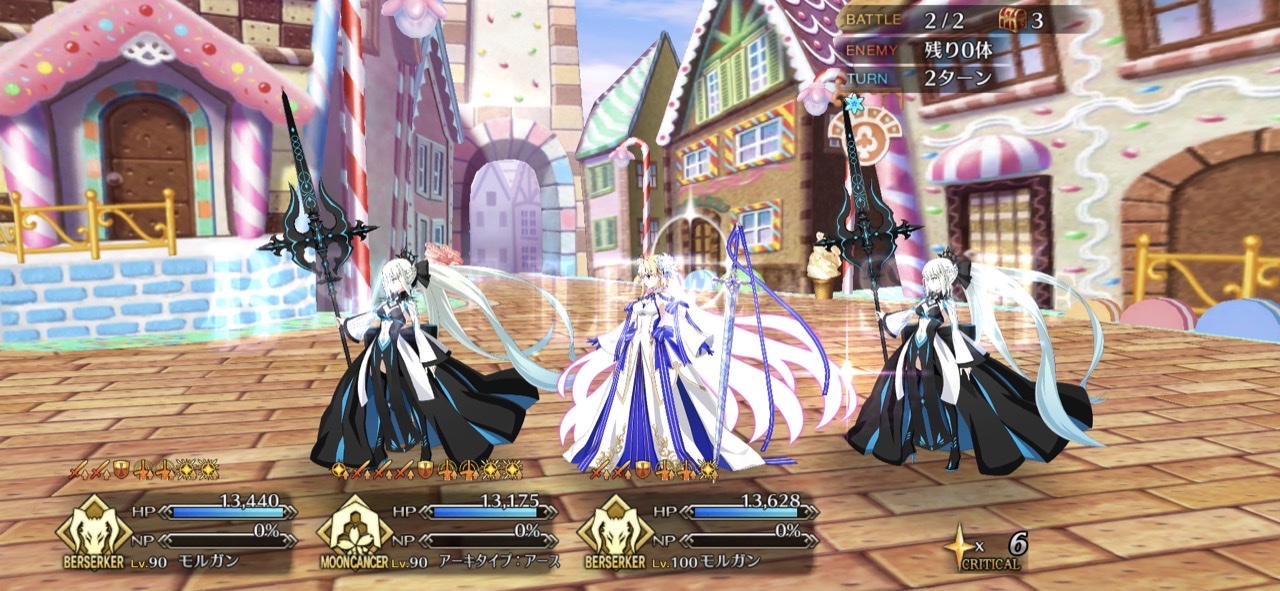 このときのクエスト編成は1.3.2(もしくは1)なので、イノセンスアロンダイト→ロードレスきゃメロット→ホロウハートアルビオン、の流れを6積み編成で行うことができるのだ。