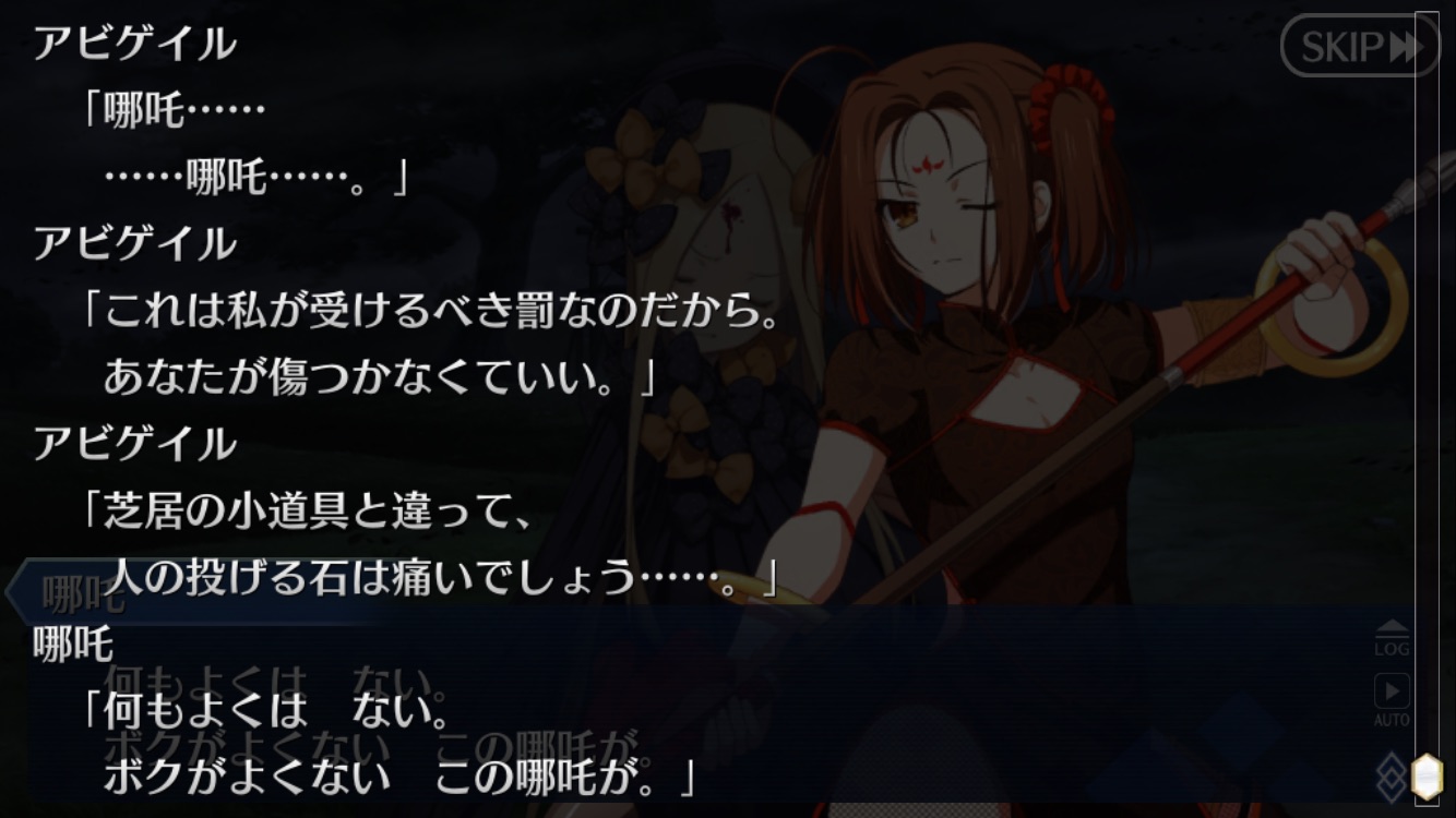 石を投げられたアビゲイルに怒る哪吒
