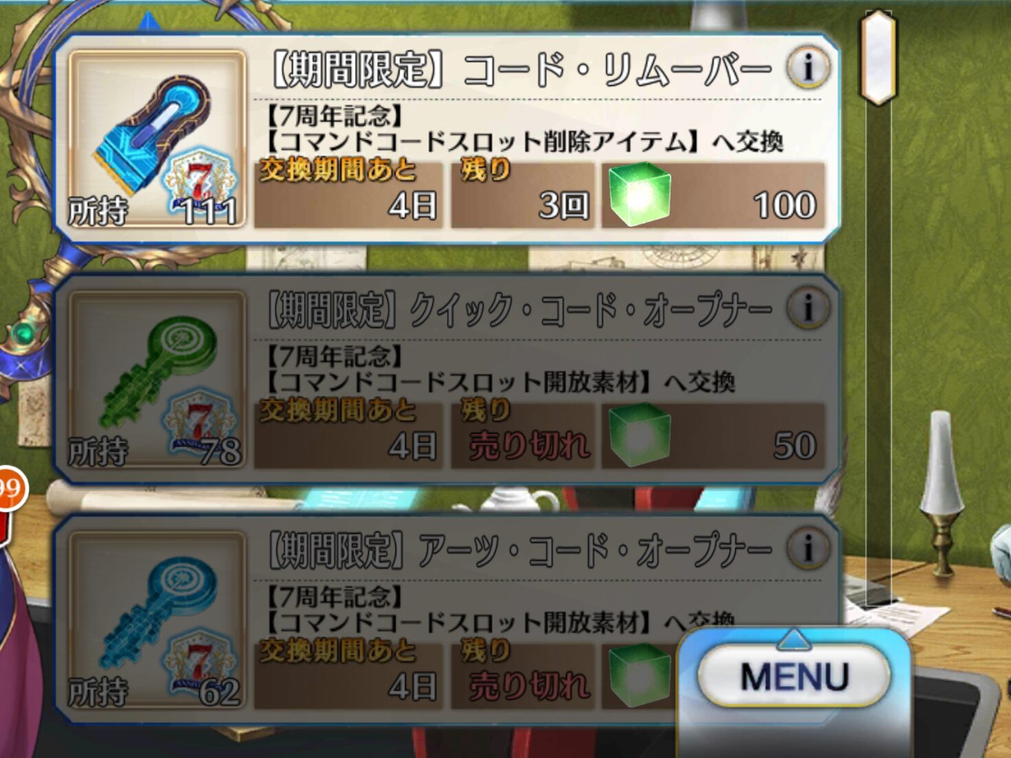 数日経って実感したけどデイリーミッションのおかげで素材が今までの4倍貯まるようになったのすごいありがたいぞ