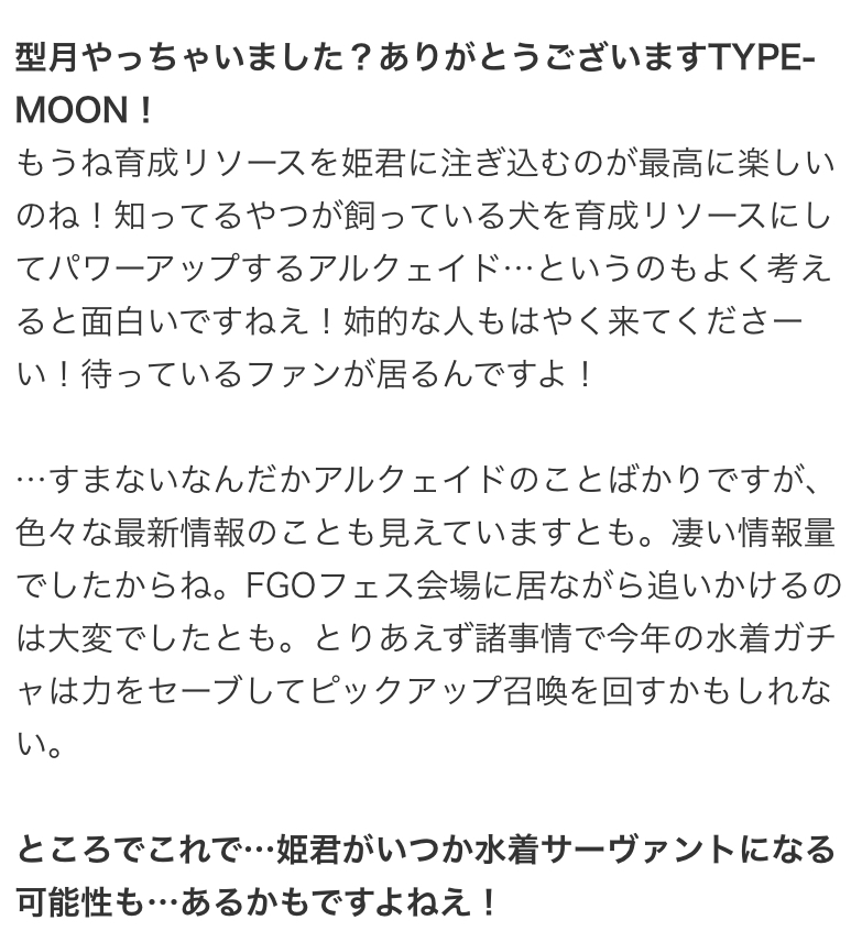 通常イベントの隙間にroad to 7 があと4つ挟まるから日程ギチギチってレベルじゃねーぞ感ある後期精神異常無効の露骨なエウリュアレ対策に笑う