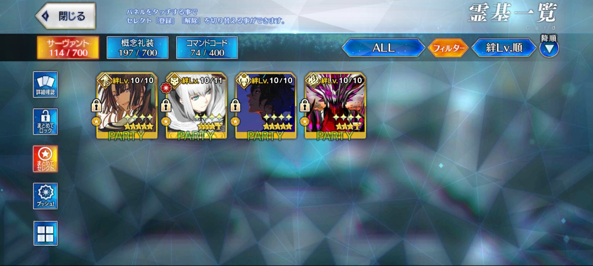 最近だとマン兄さんもやるようになったね殆どサーヴァントの絆平等にあげてるから絆礼装少ない…そろそろ絆上げに真剣になった方が良さそうだ
