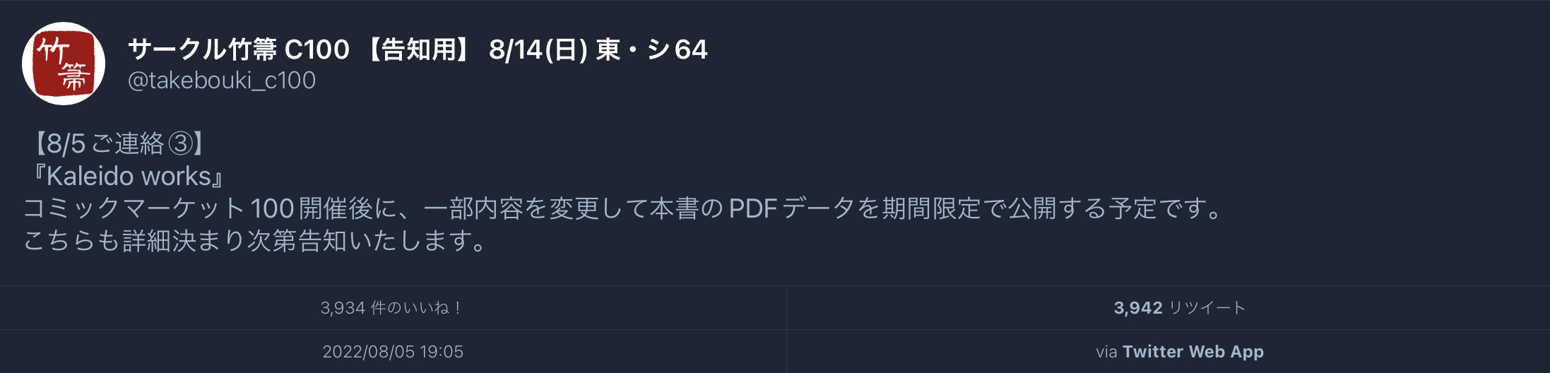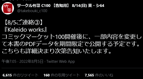 ぶっちゃけ本当に個人のチカ先生と違って実質的にTYPEMOONブックス販路使えるしとらメロンあたりとガッツリ契約出来る体制もあるから行き渡るまで順次刷って出ししてってやったほうが出す方も手に入れる方も速くて確実と思ってたから意外っちゃ意外>>82
