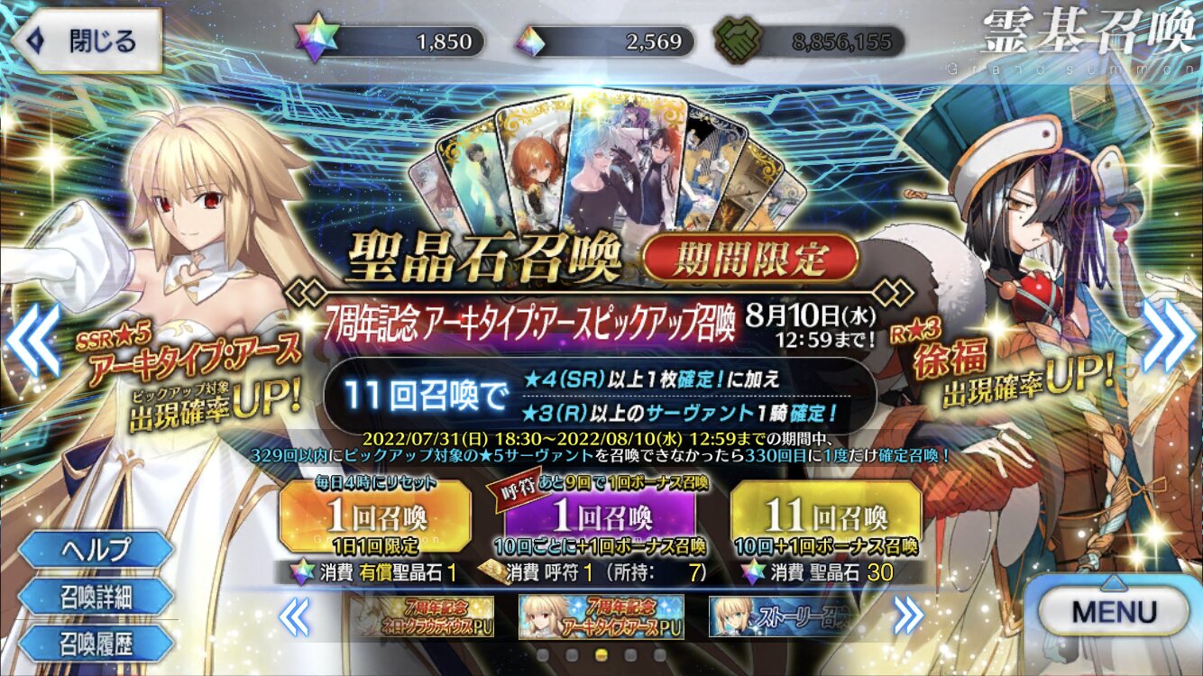 アルクpuは10日に終わるけど日替わりpuのイリヤは11日まである